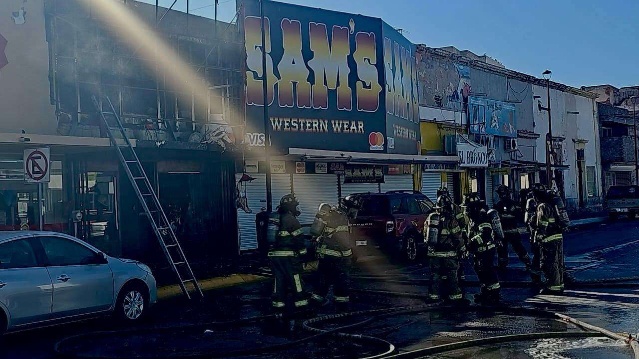 Chihuahua.- Una llamada a los números de emergencia alertó al H. cuerpo de bomberos con el reporte de incendio al interior de un local comercial de sombreros ubicado sobre la avenida Juárez, en la colonia Centro.