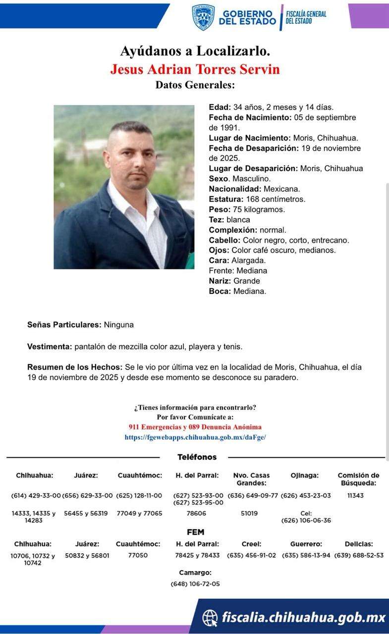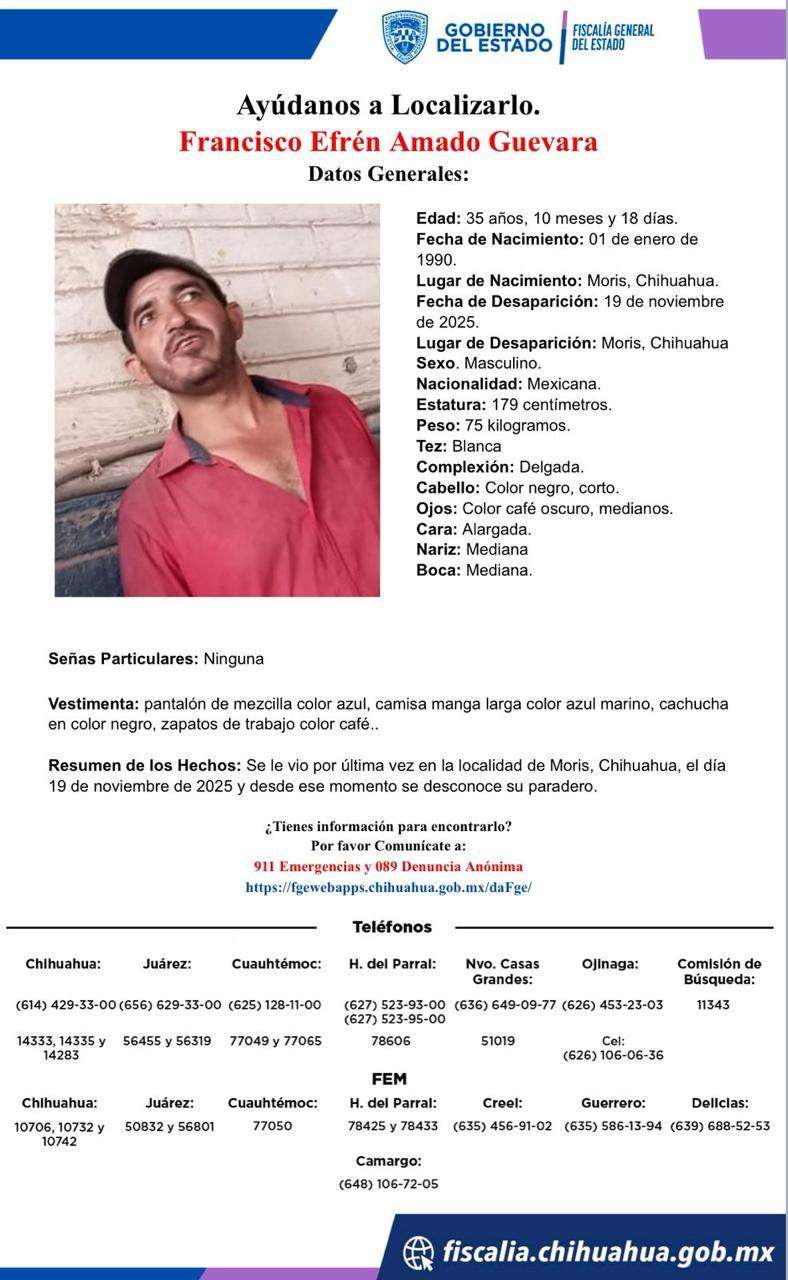 Chihuahua. – Hoy se cumplen cinco días de la desaparición de tres hombres en el municipio de Moris.