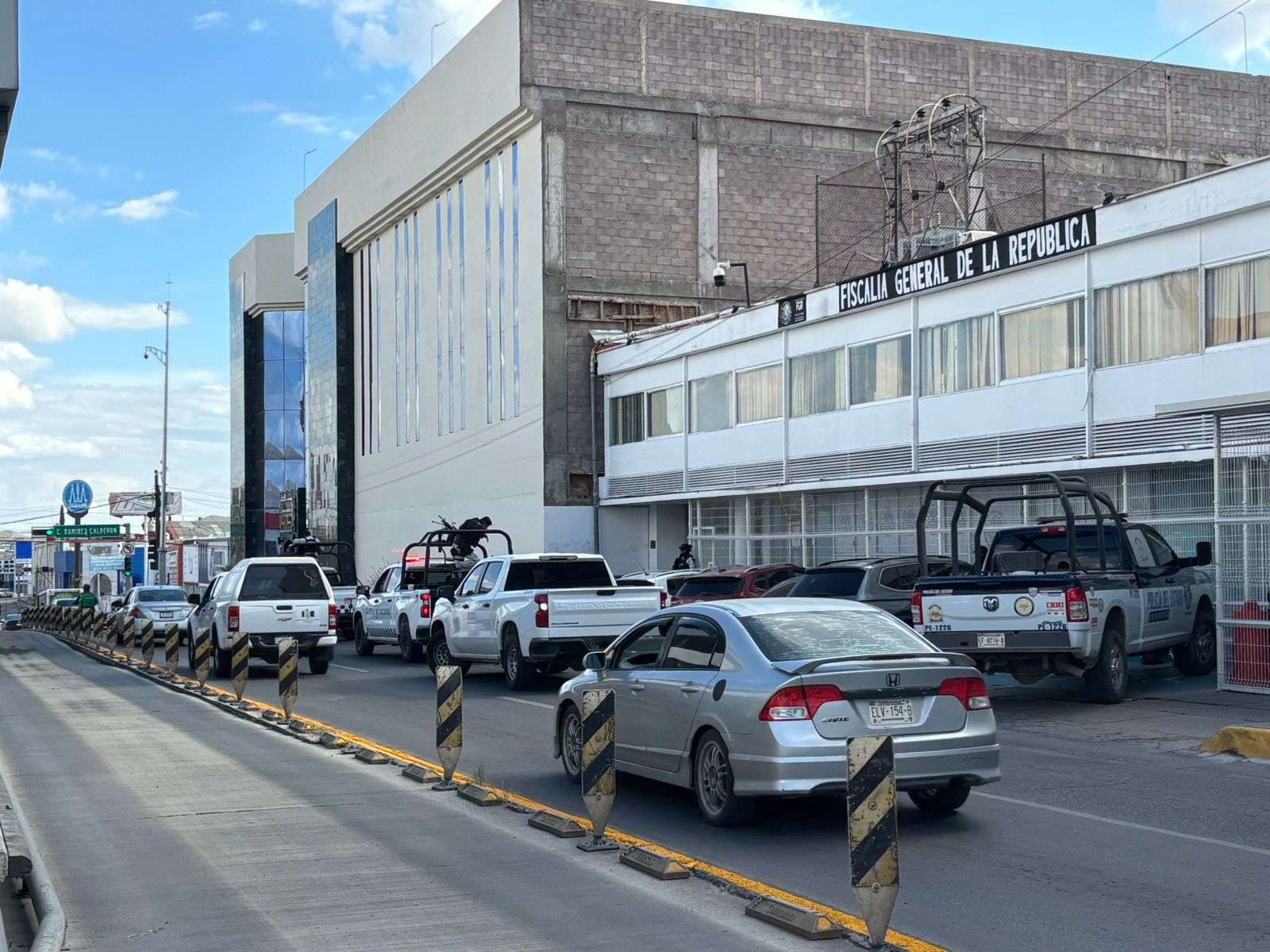Chihuahua.- Elementos de la Agencia Estatal de Investigaciones, de la Secretaría de Seguridad Pública Estatal y de la Guardia Nacional, sitiaron esta tarde la Fiscalía General de la República, ubicada en la avenida Universidad, entre Ramírez Calderón y División del Norte.