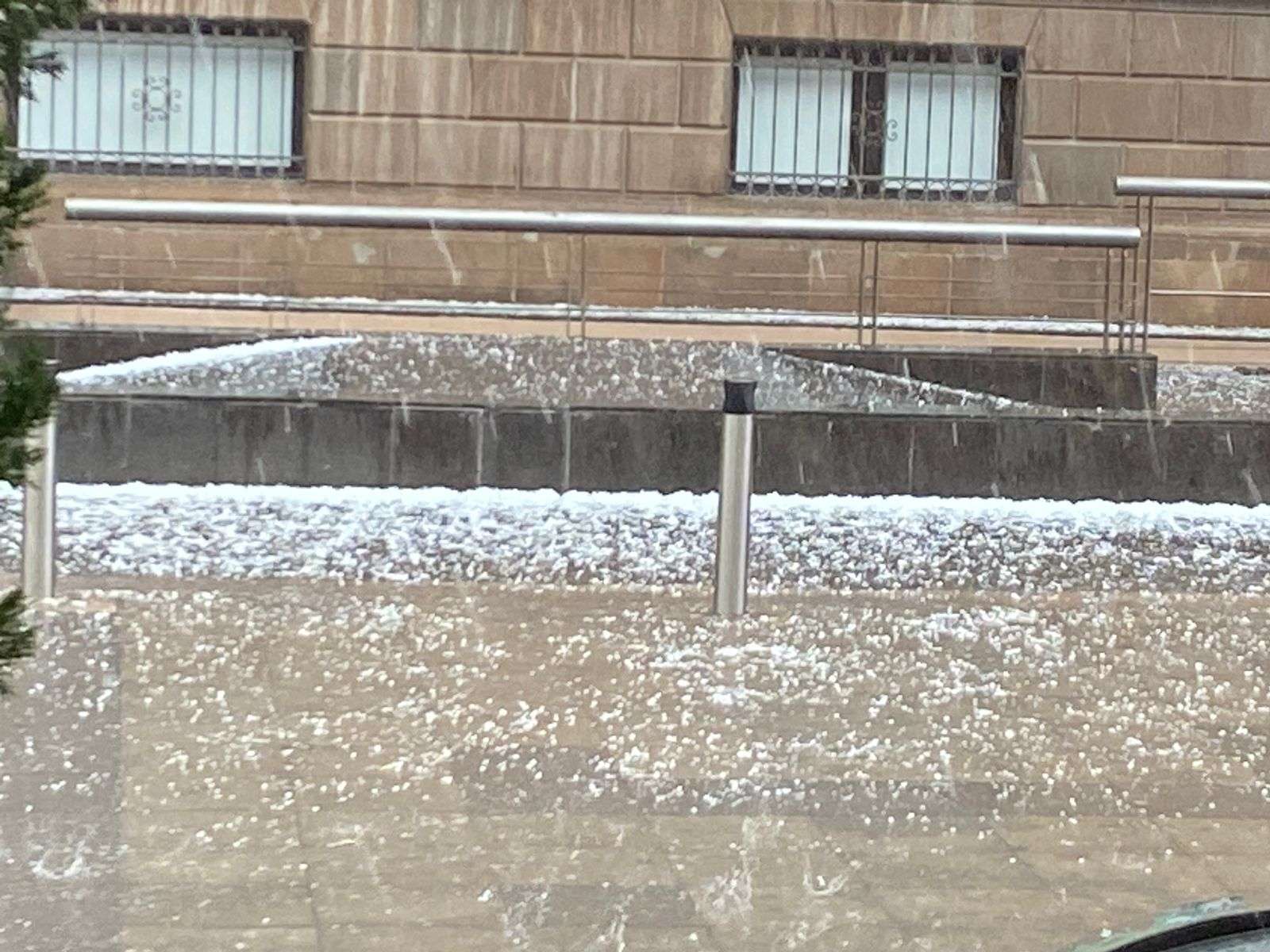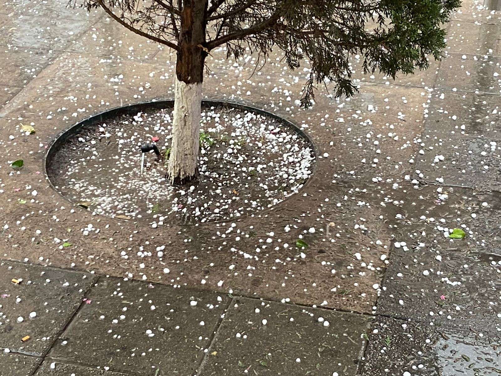 Las calles rápidamente se vistieron de blanco, ya que cayó granizo de grandes dimensiones posteriormente una tormenta.