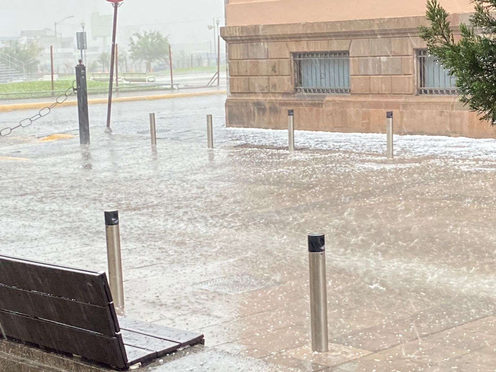 Chihuahua.- Una fuerte granizada acompañada de viento se presentó está tarde en el Centro de la ciudad donde sorprendió a propios y extraños que corrieron a refugiarse debajo de las cornizas de los negocios.