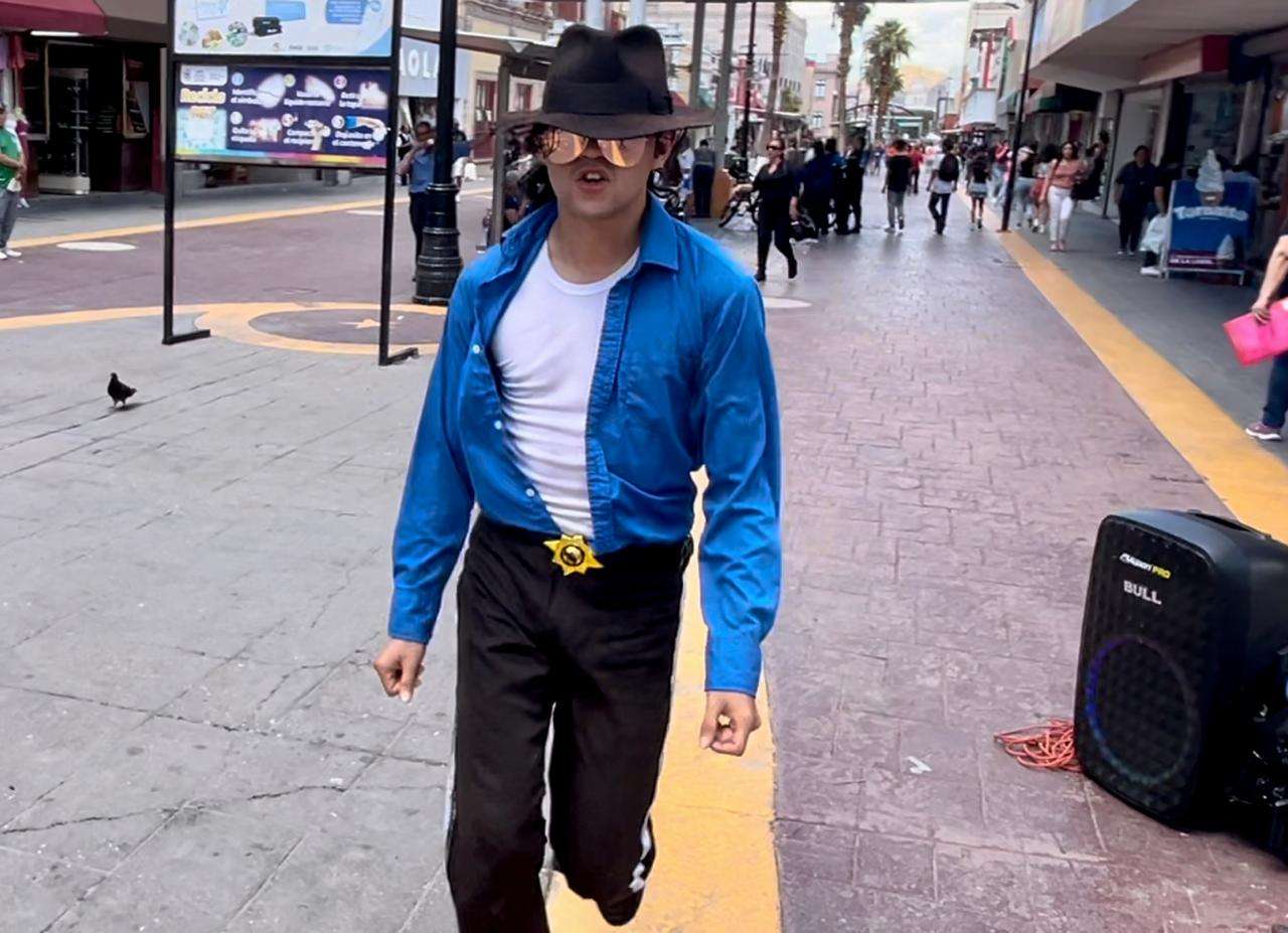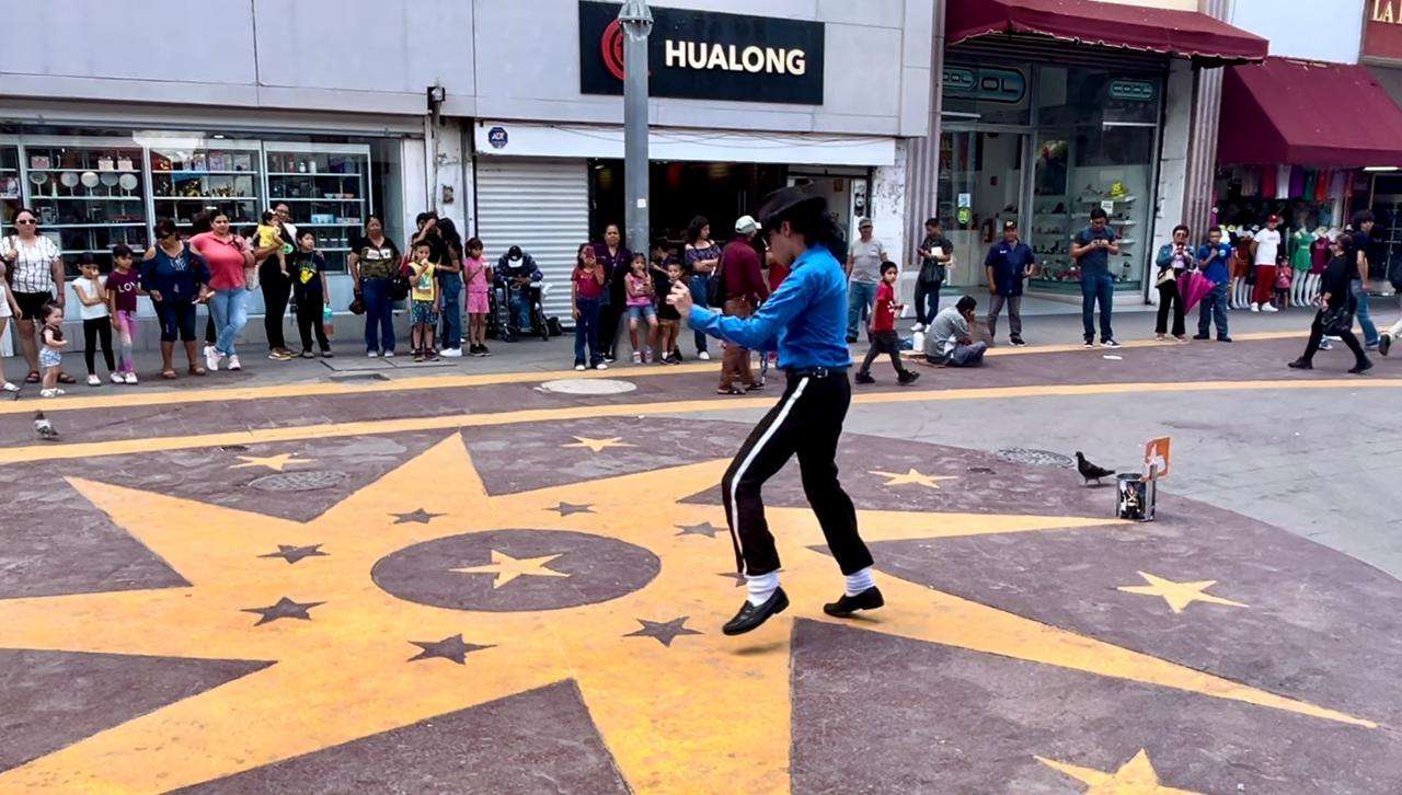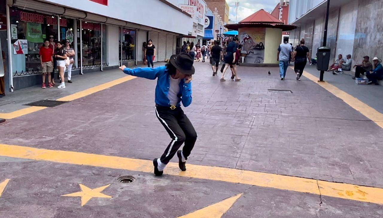 Chihuahua.- Desde temprana hora el llamado Alex Jackson, Alexis Moreno, originario de Ciudad Juárez, deleito y sorprendió a visitantes del centro de la ciudad con su tradicional baile.