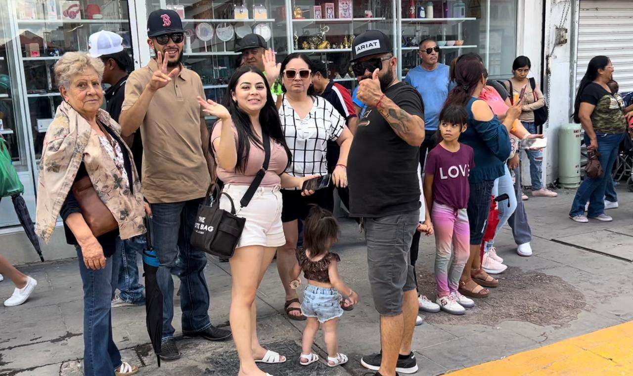 Algunos de los espectadores con nieve en mano y agua, entre los cuales se encontraban algunos turistas detuvieron su marcha para ver este espectáculo que llamó la atención de los propios locatarios de la calle Libertad.