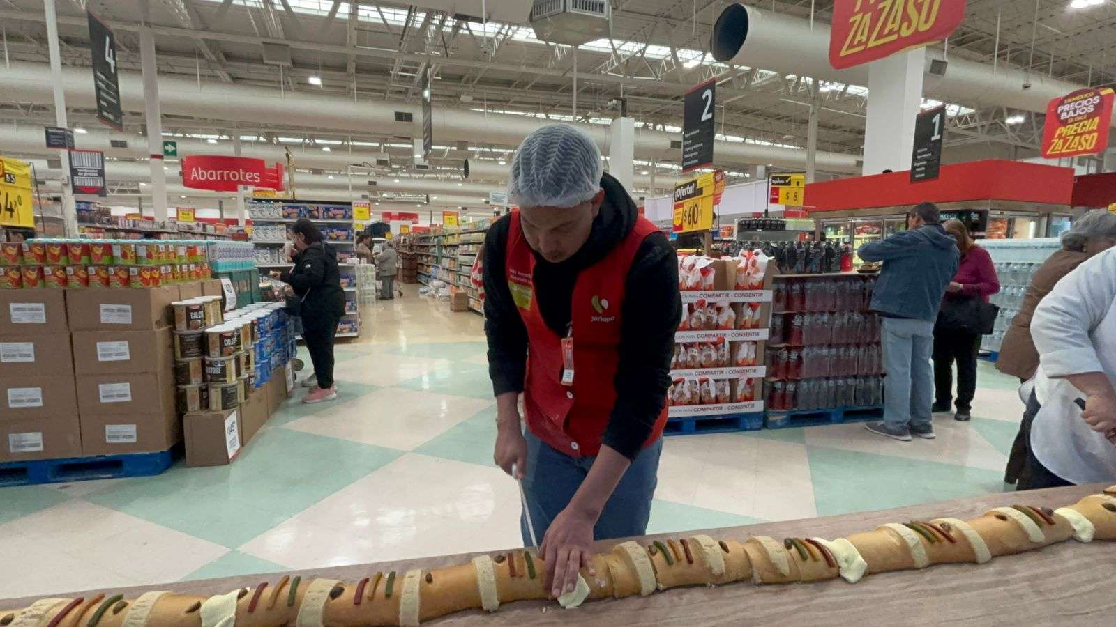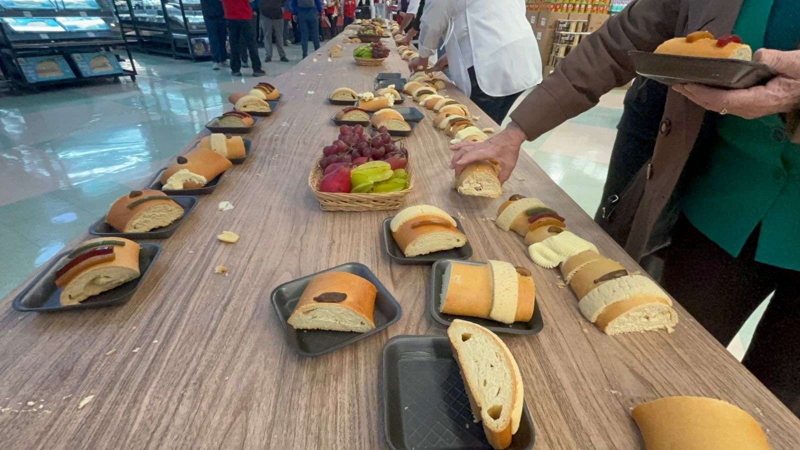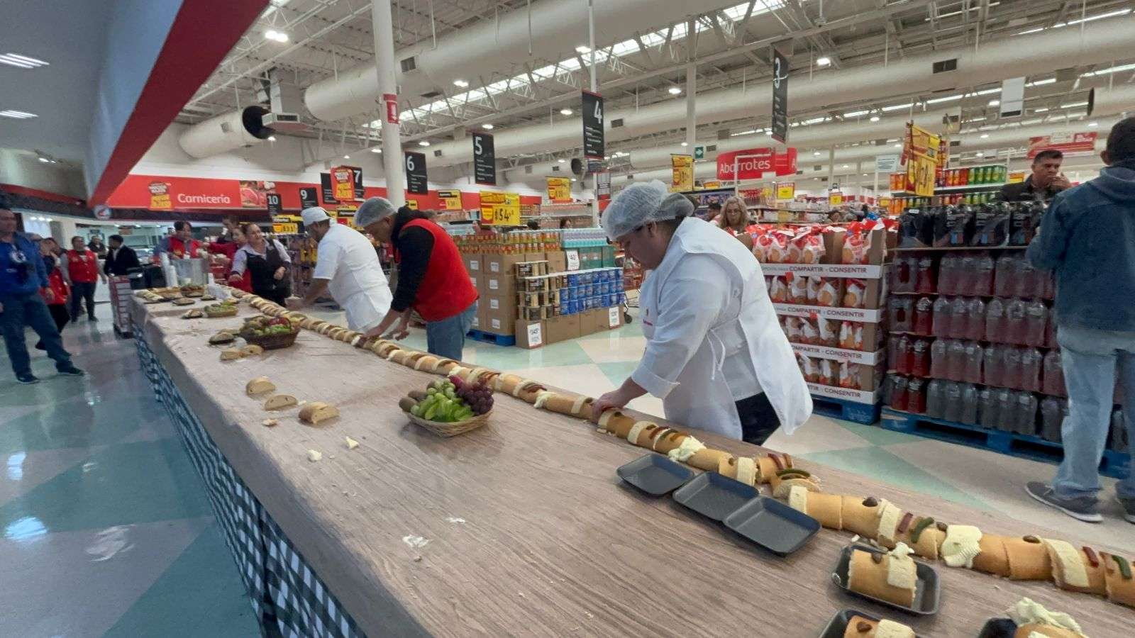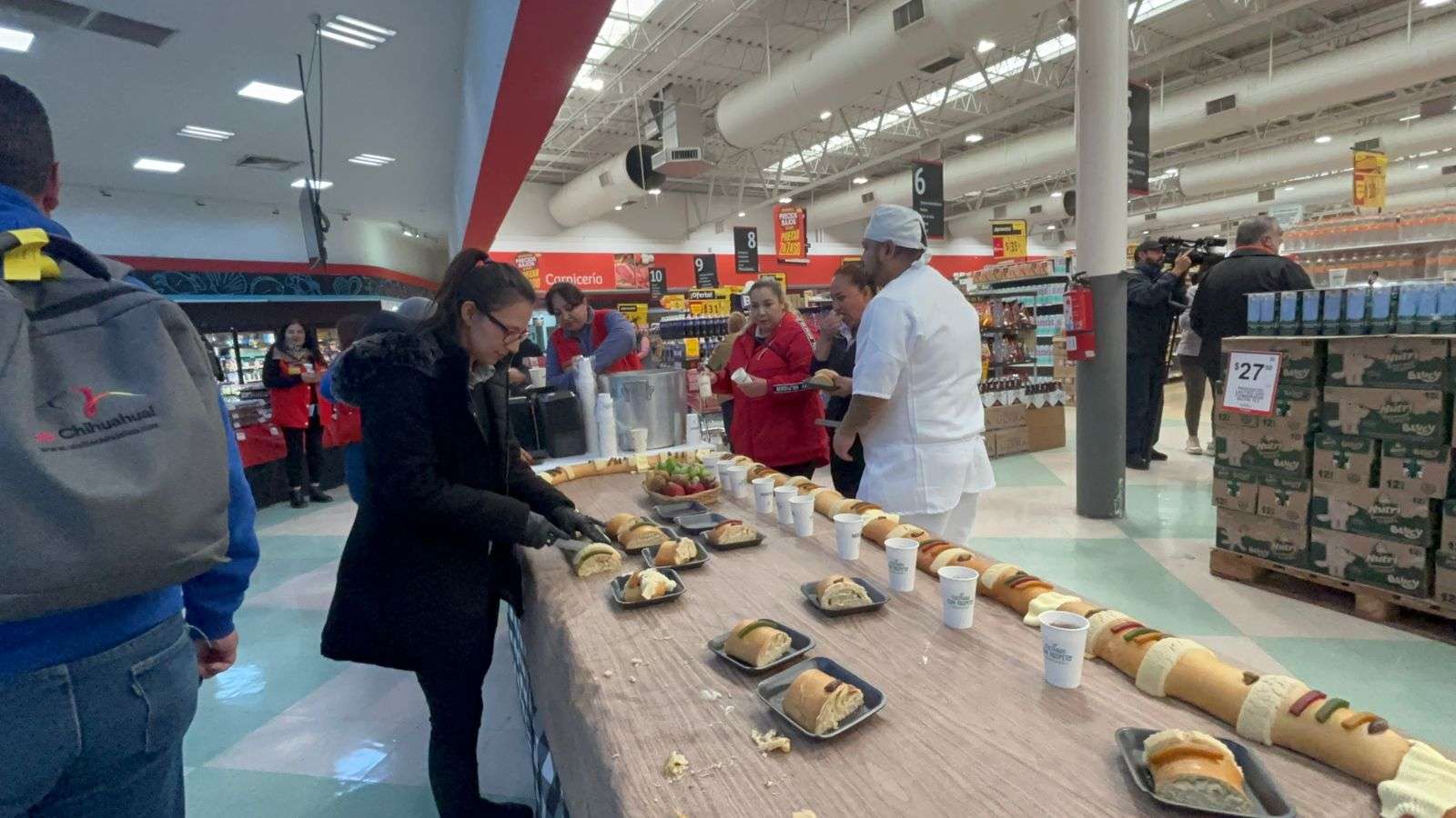 Chihuahua, Chih.– Como ya es costumbre, el supermercado Soriana Mirador elaboró una Rosca de Reyes de 25 metros, la cual se ofrece de manera gratuita a los clientes, acompañada de café, para que disfruten de este pan tradicional que simboliza el encuentro de los Reyes Magos con el Niño Jesús, cada 6 de enero.