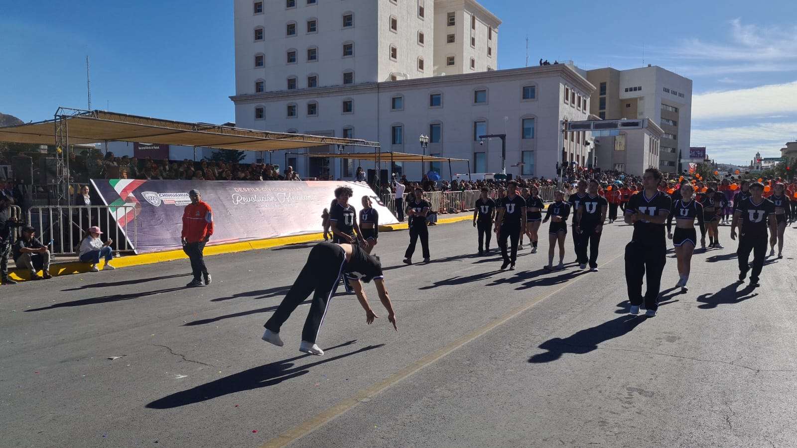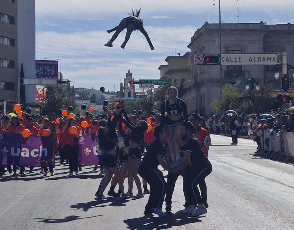 Chihuahua, Chih.- La Universidad Autónoma de Chihuahua (UACH) brilló con luz propia durante el desfile conmemorativo del 113 aniversario de la Revolución Mexicana en la ciudad. En esta festividad cívica, la institución destacó no solo por su presencia, sino también por la participación entusiasta de su equipo de porristas.