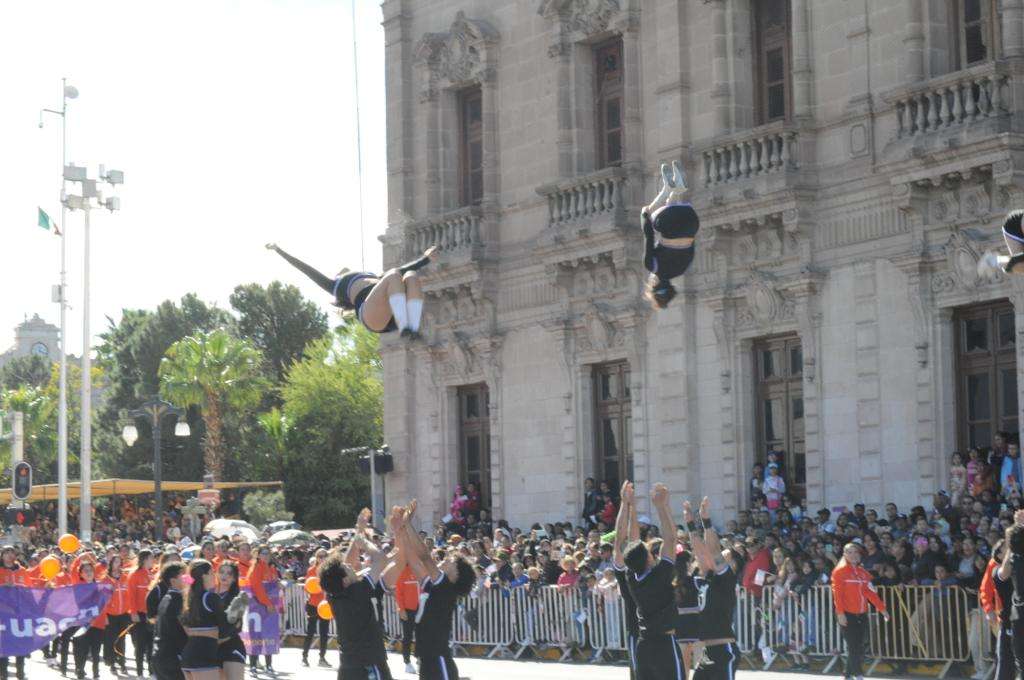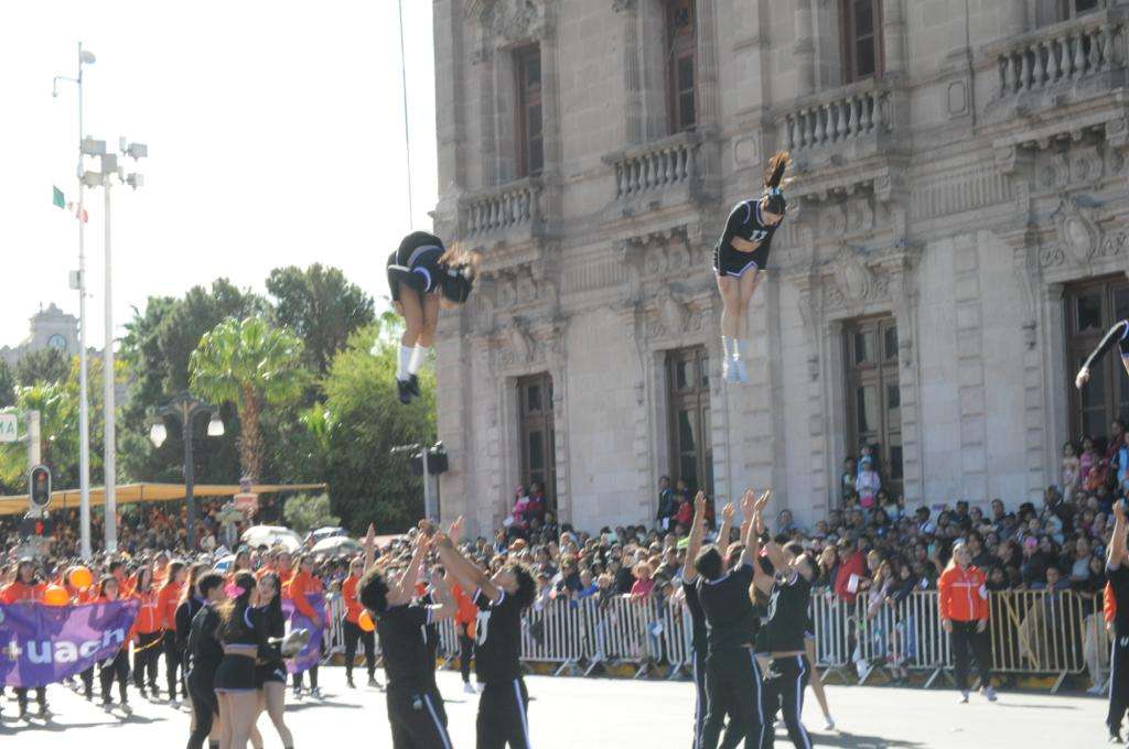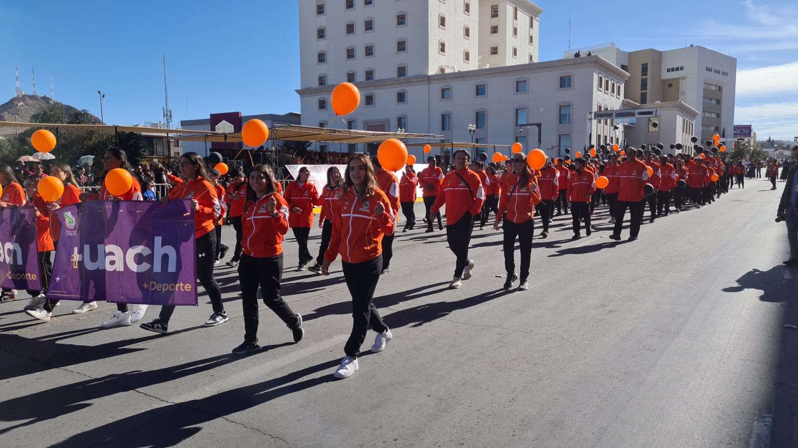 Además de la destacada participación de los porristas, el desfile contó con la presencia de docentes y alumnos de la UACH, quienes desfilaron con orgullo representando a la institución educativa.