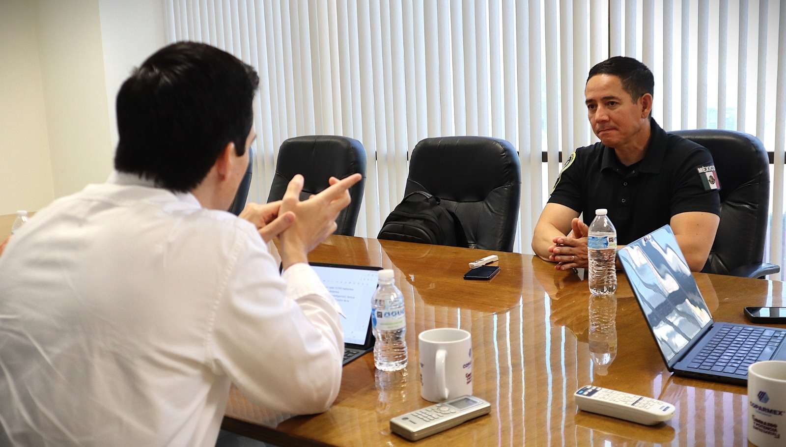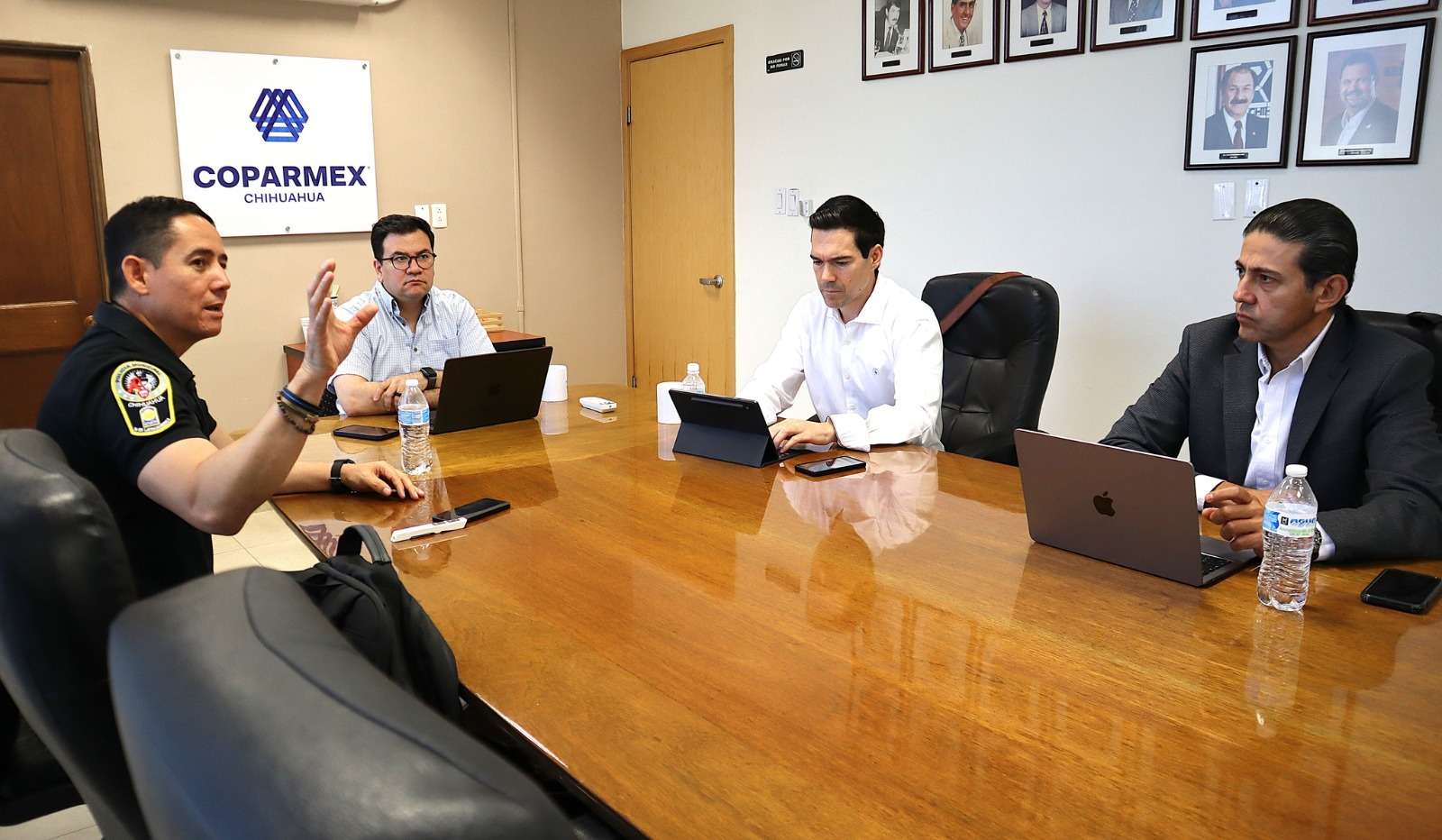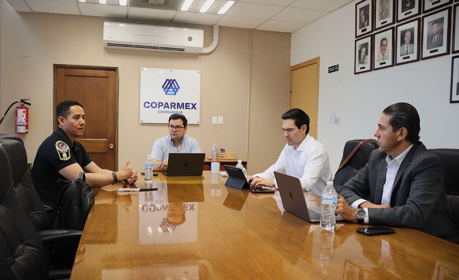 Chihuahua.– El presidente de la Confederación Patronal de la República Mexicana (Coparmex), Jorge Treviño Portilla, sostuvo una reunión de trabajo con el comisario de la Policía Municipal, Julio César Salas González, como parte de las acciones de Coparmex Chihuahua para fomentar condiciones de seguridad, indispensables para la inversión, el empleo y el bienestar de la ciudadanía.
