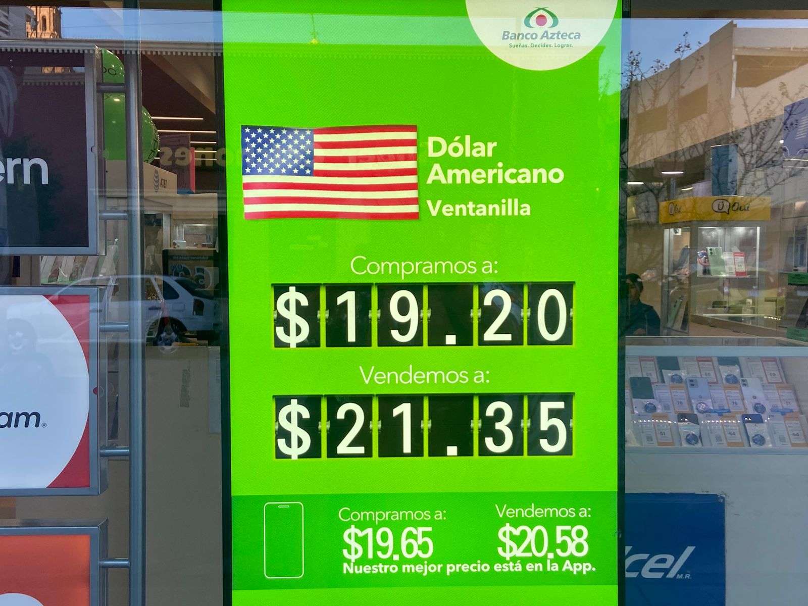 Chihuahua. – Este 2 de febrero, la cotización del dólar alcanzó los $21.35 a la venta y $19.20 a la compra en las ventanillas del Banco Azteca.