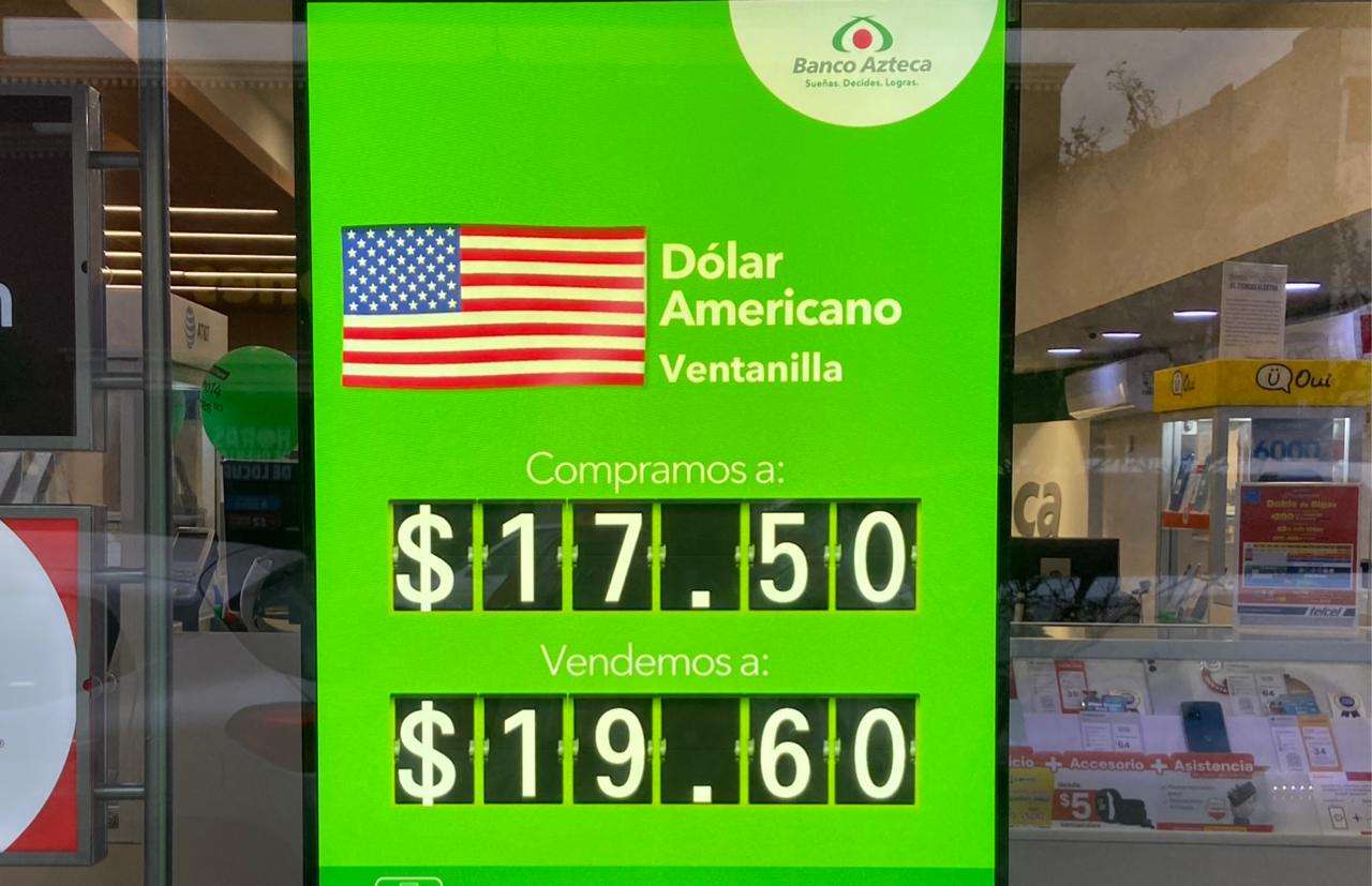 Chihuahua.- Este martes 30 de diciembre, el dólar cotizó a $19.60 a la venta y a $17.50 a la compra en las ventanillas de Banco Azteca, ubicadas en la calle Cuarta y Aldama.