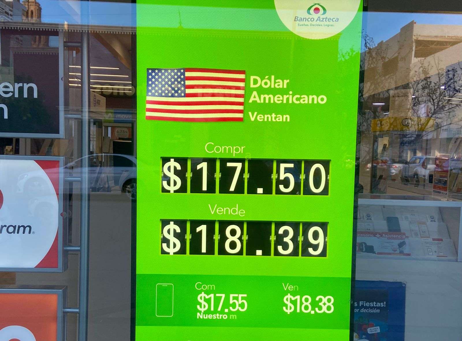 En las ventanillas de Banco Azteca, ubicadas en la calle Cuarta y Aldama, el billete verde se cotizó en $18.39 a la venta y $17.50 a la compra, manteniéndose sin cambios respecto a la jornada del jueves.