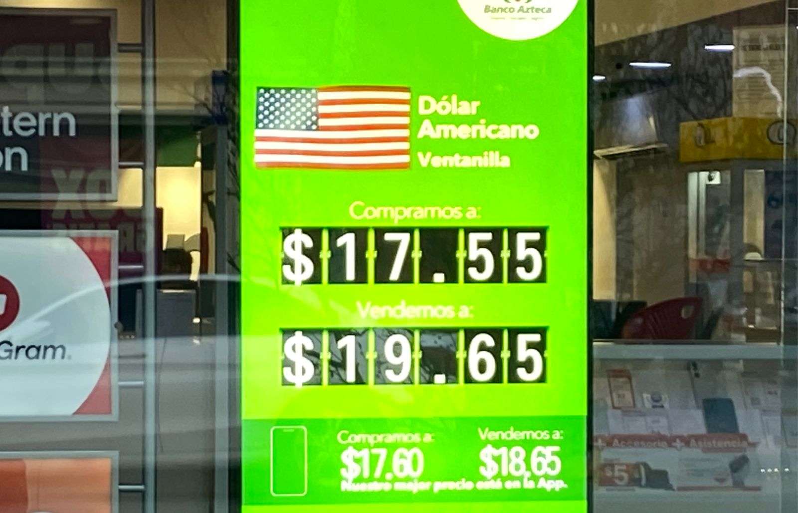 Chihuahua.- El dólar para este miércoles 7 de enero subió a $19.65 a la venta y a $17.55 a la compra en ventanillas del Banco Azteca, ubicado en la calle Cuarta y Aldama.