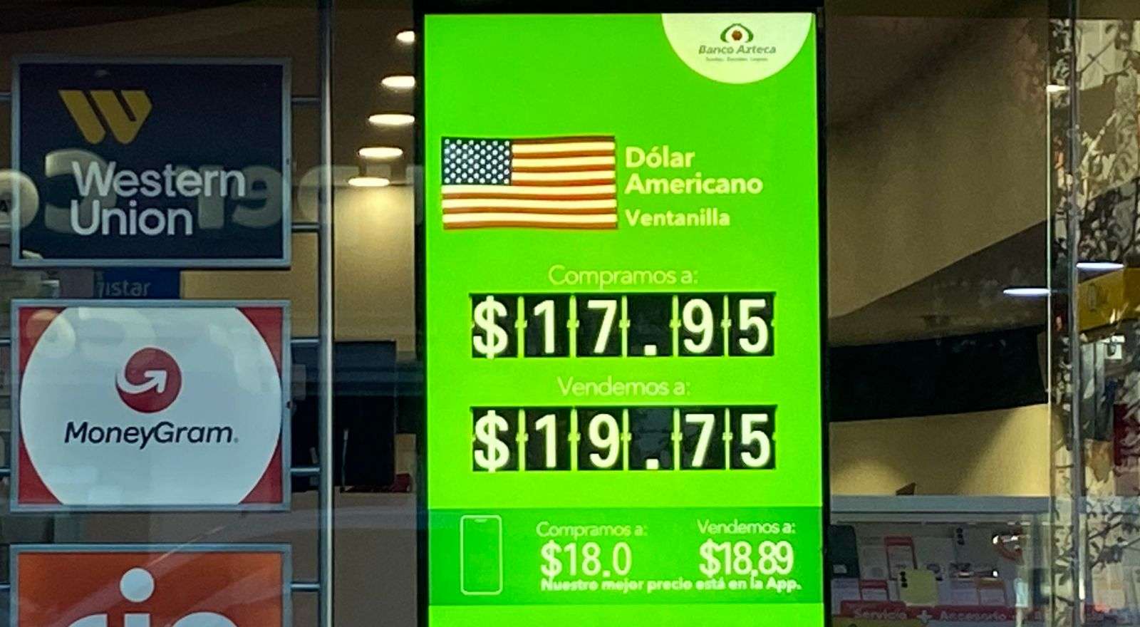 Chihuahua.- Este martes 9 de diciembre, el dólar americano cotizó a $19.75 a la venta y a $17.95 a la compra en las ventanillas del Banco Azteca, ubicado en la calle Cuarta y Aldama.