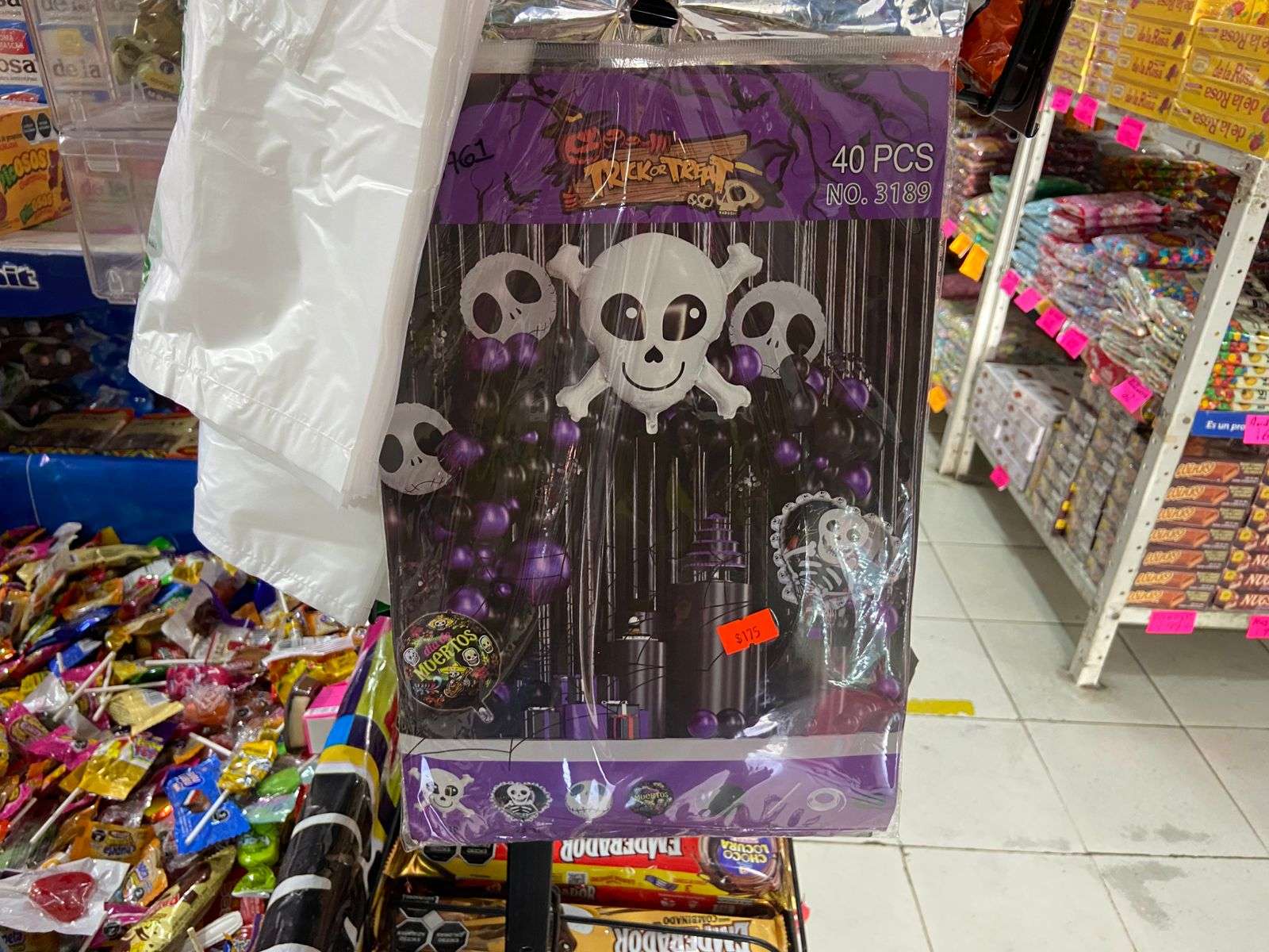 Entre los artículos más buscados se encuentran las paletas en forma de calaverita, gomitas de araña, máscaras, globos decorativos y dulces a granel, estos últimos los favoritos para repartir entre los niños el día de Halloween.