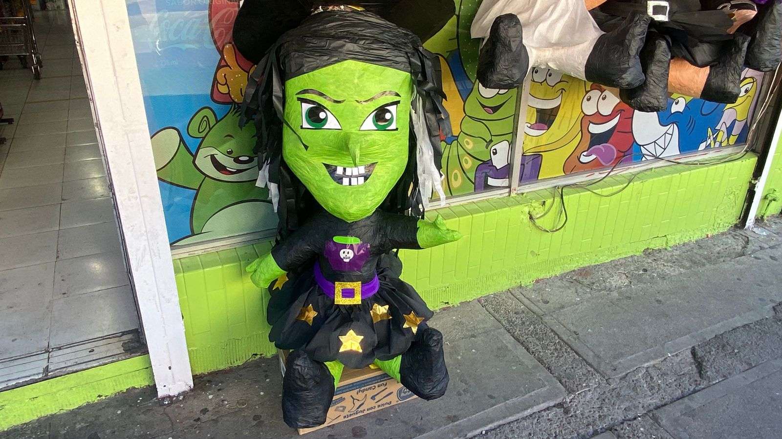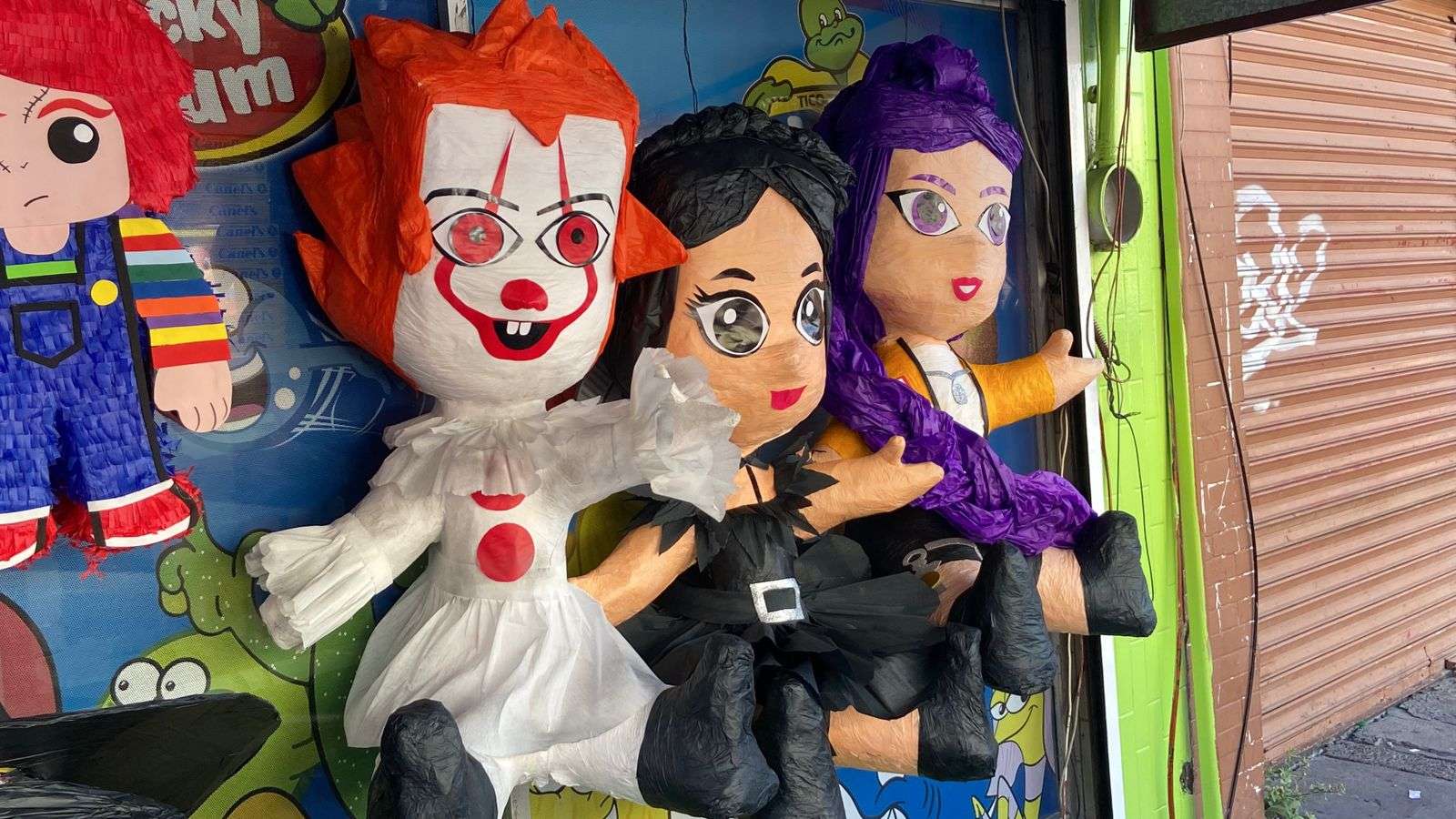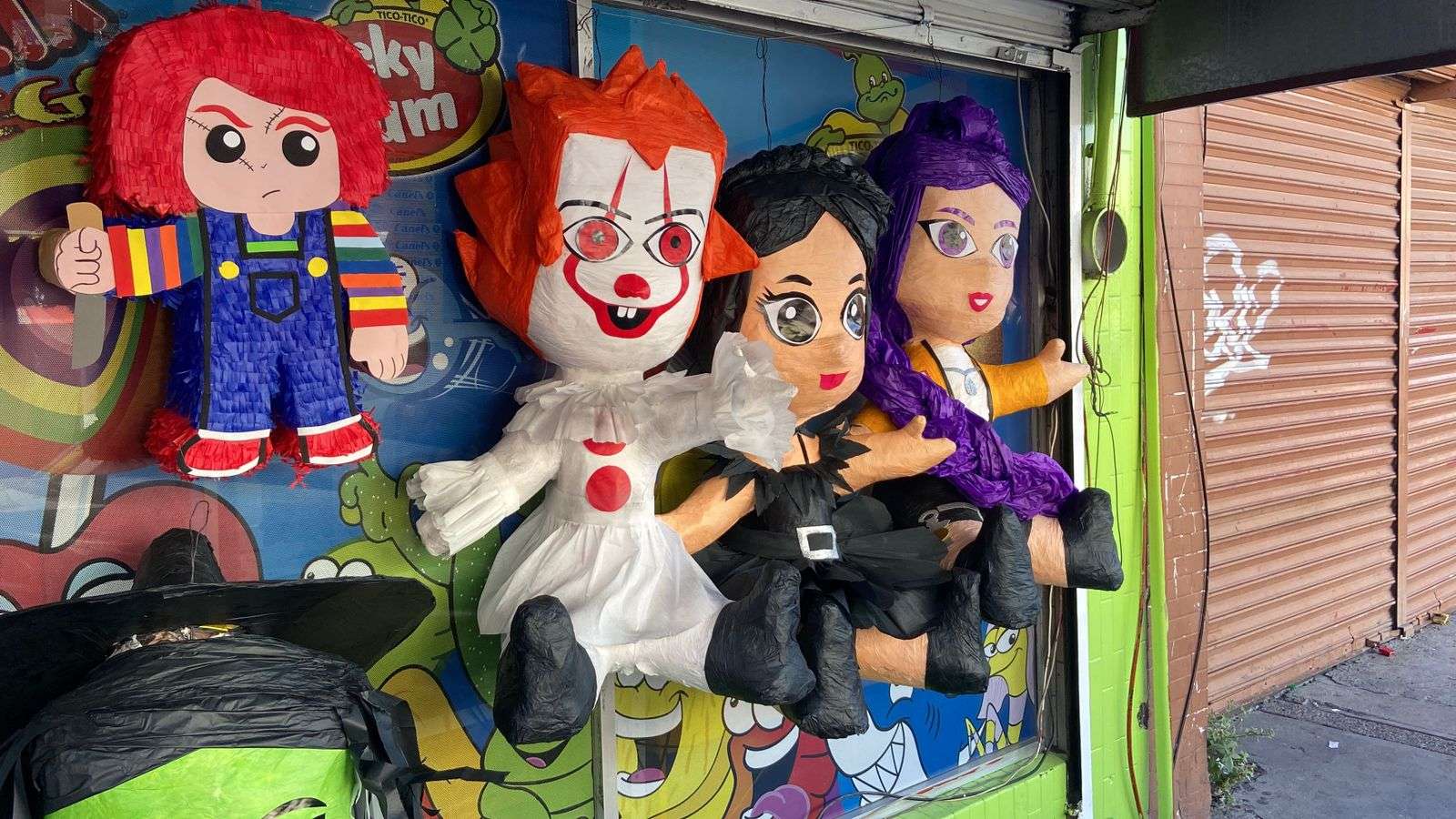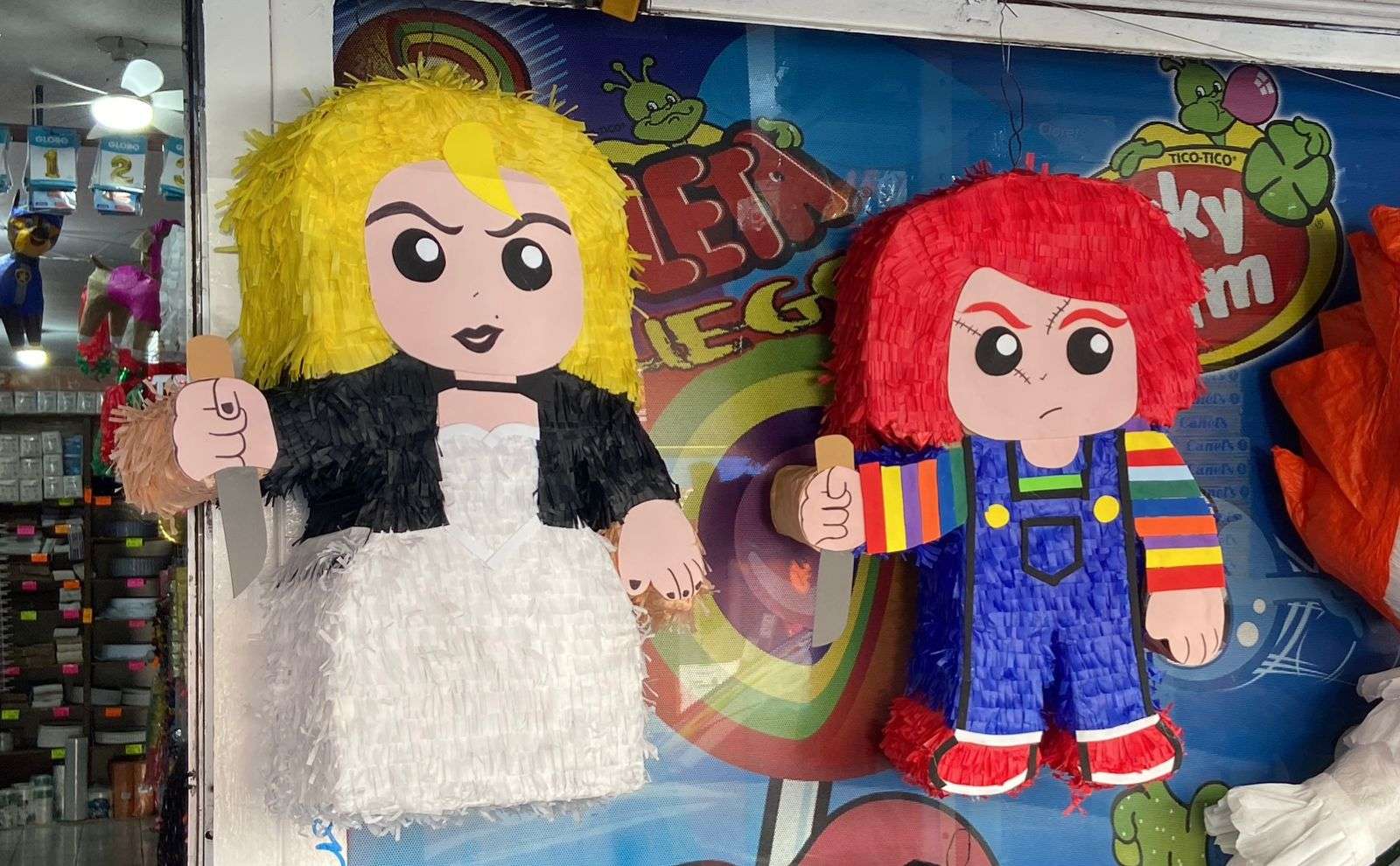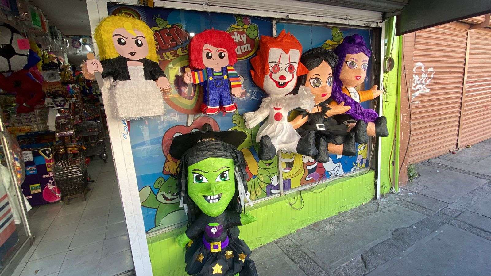 Las figuras más populares incluyen brujas, calabazas y personajes como “Eso” el payaso y Chucky, entre otras opciones que combinan lo festivo con lo terrorífico. Estas piñatas se han convertido en un complemento ideal para las fiestas escolares y reuniones familiares.