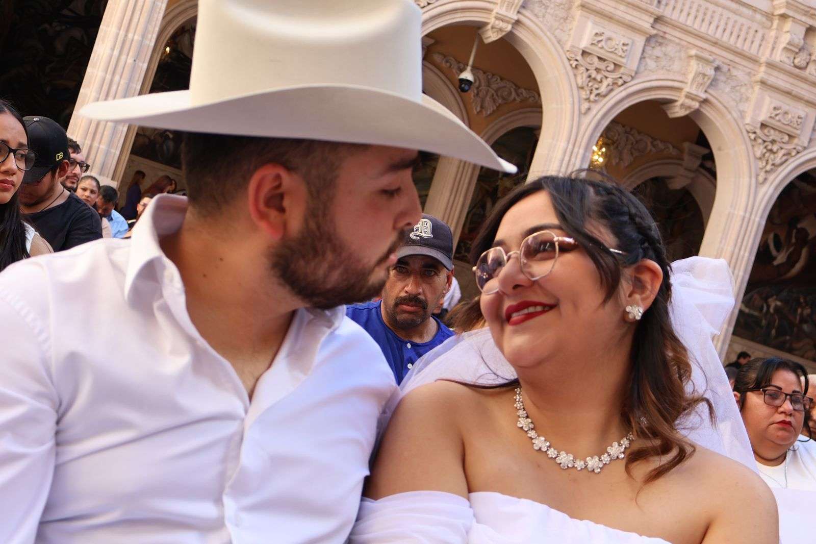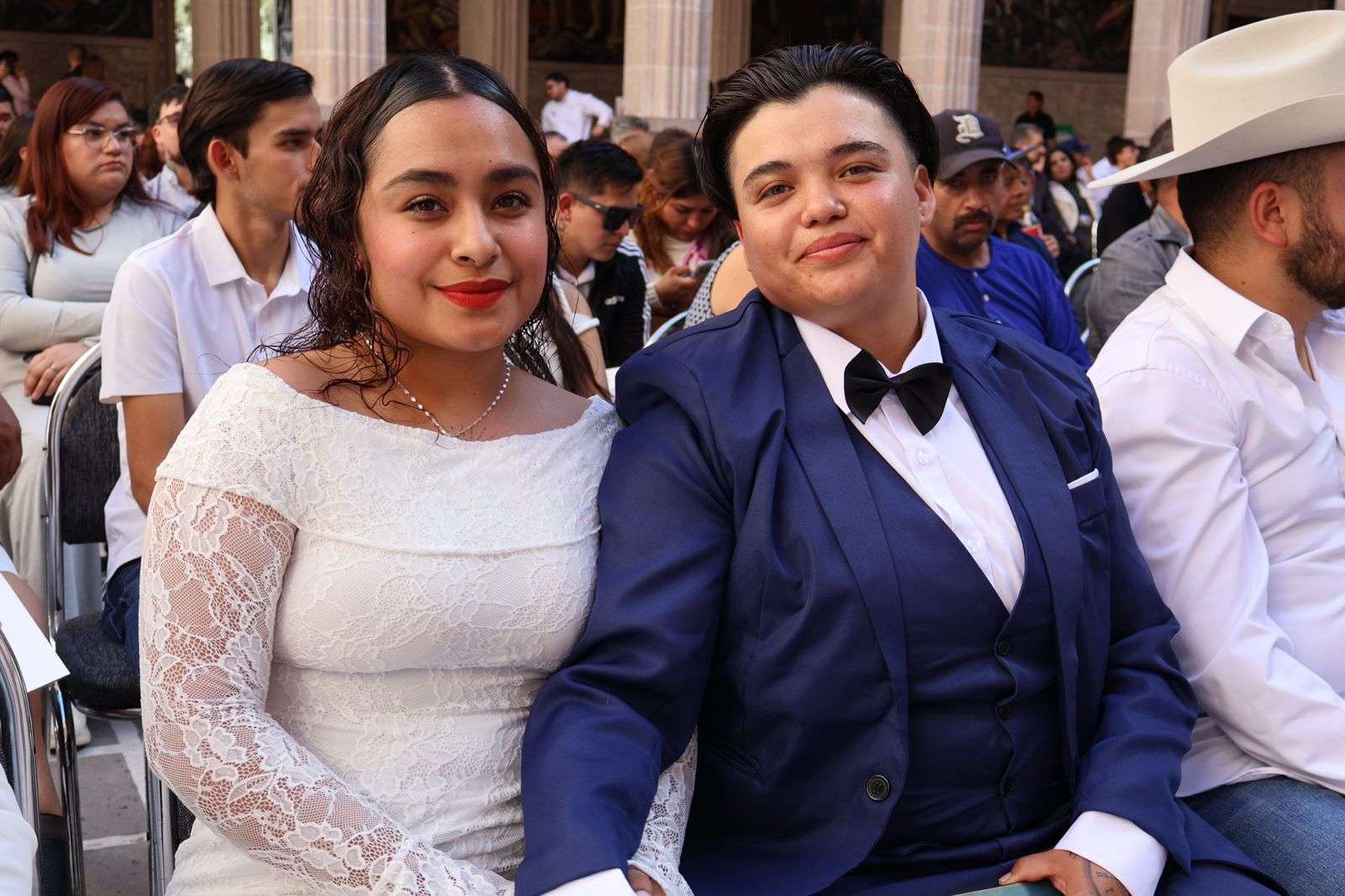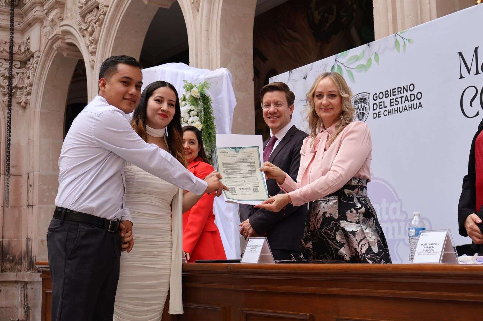 Chihuahua, Chih.- En ceremonia efectuada en el Patio Central de Palacio de Gobierno, 150 parejas se dieron “el sí” en el marco del programa de Matrimonios Colectivos, que este año superó la meta registrada en 2025.