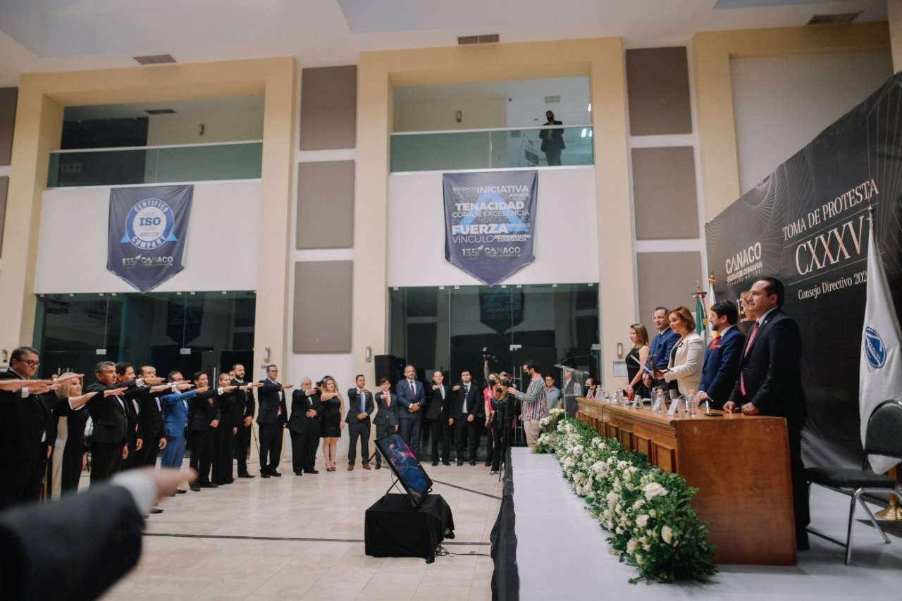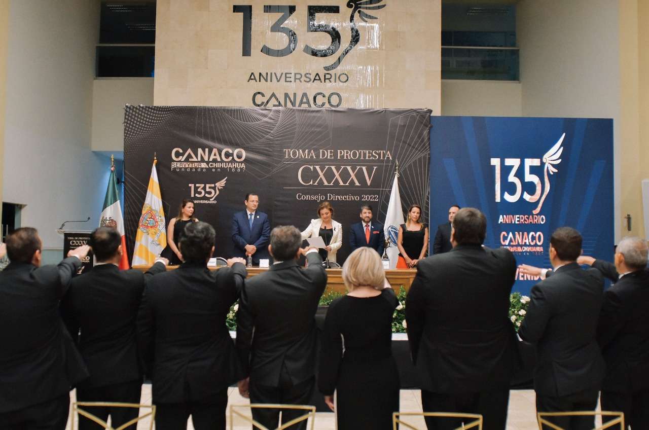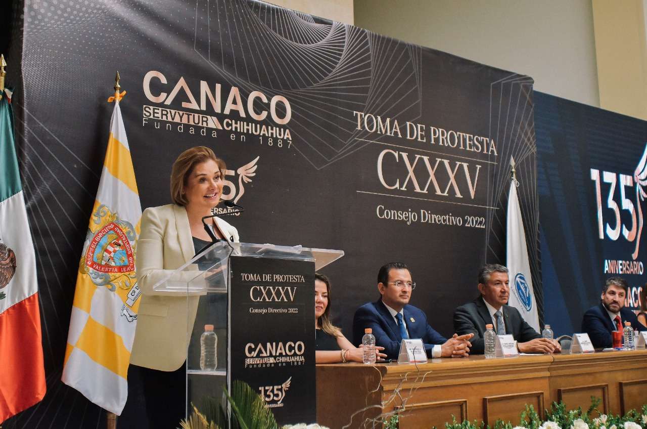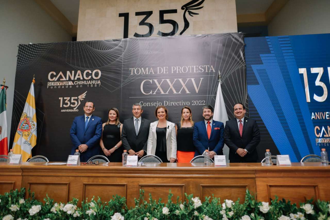 La Gobernadora Maru Campos Galván, tomó protesta a los integrantes de la nueva mesa directiva de la Cámara Nacional de Comercio, Servicios y Turismo (Canaco) de la ciudad de Chihuahua, que será presidida Omar Armendáriz Jurado.
