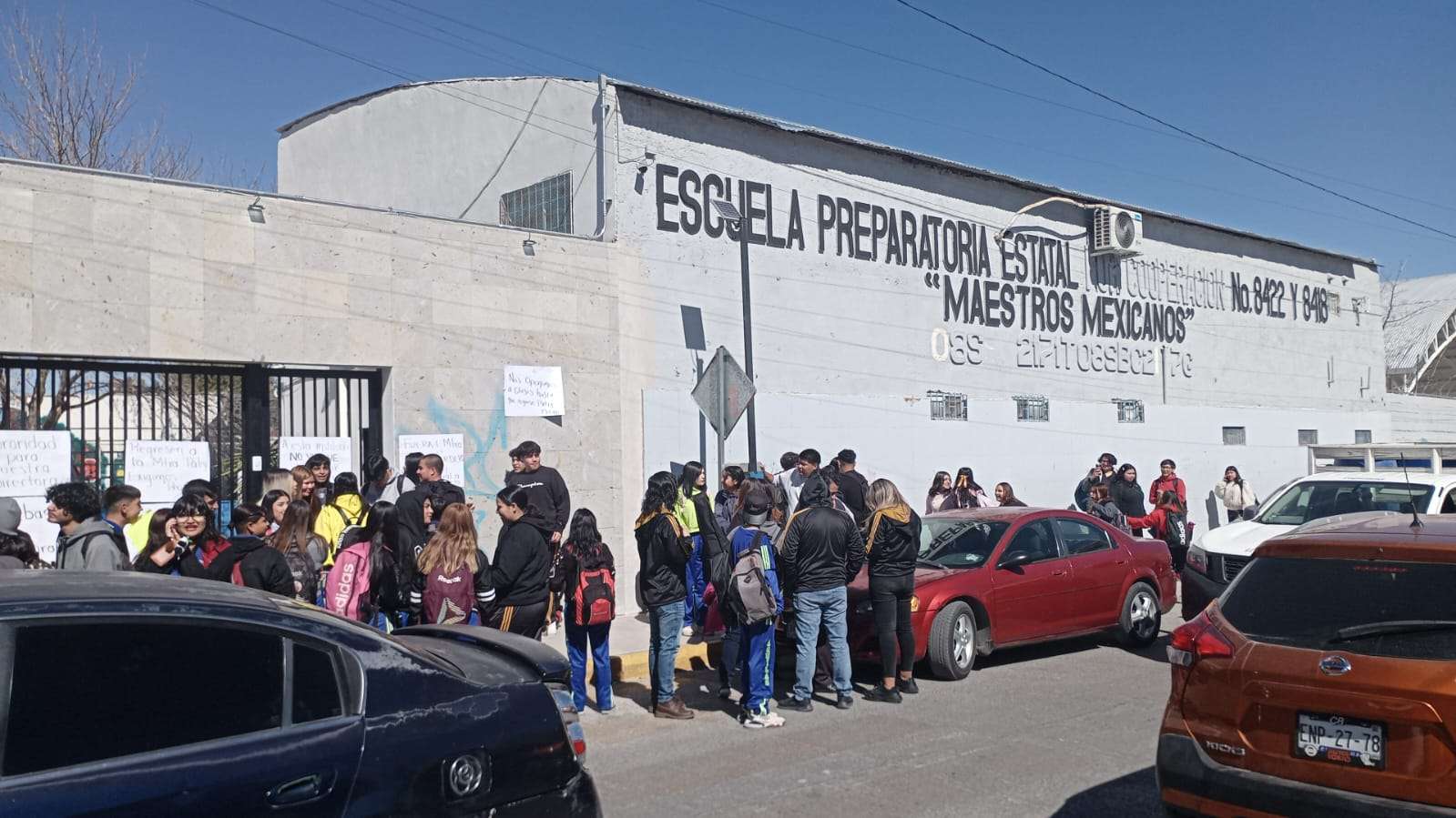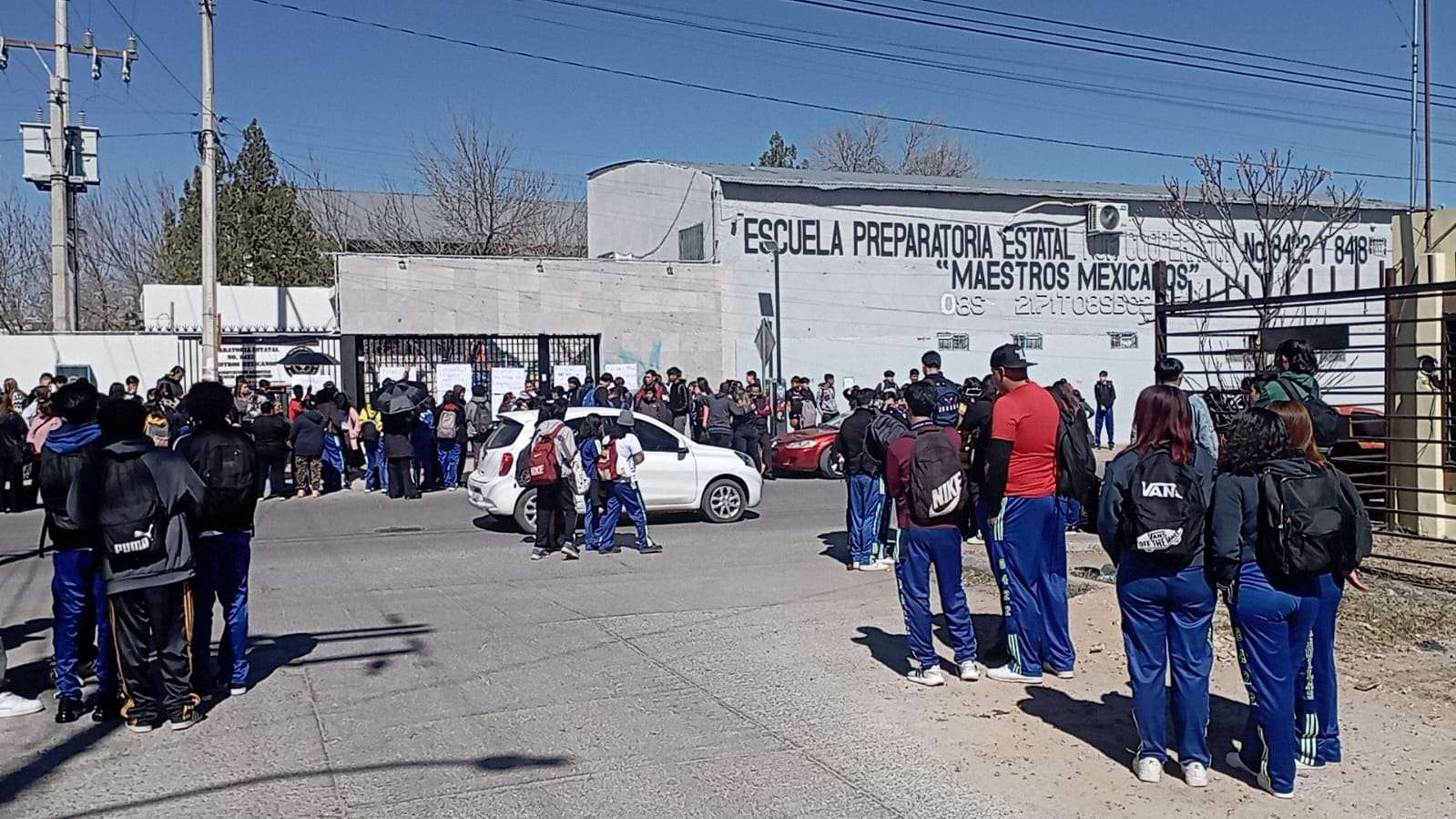 Chihuahua.- Alumnos y personal administrativo de la escuela preparatoria estatal Maestros Mexicanos tomaron las instalaciones esta tarde para exigir la restitución de su exdirectora.