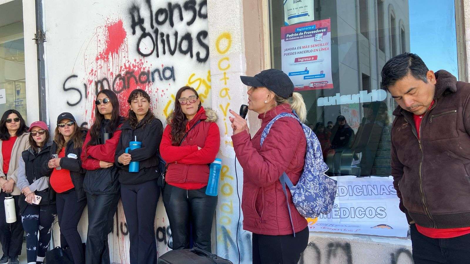 "Estamos haciendo una toma simbólica de Recaudación de Rentas, ya que el día de ayer no quedamos conformes con las resoluciones que se dieron al interior de las oficinas de gobierno con nuestro líder sindical", señaló Marisela Núñez, maestra jubilada.