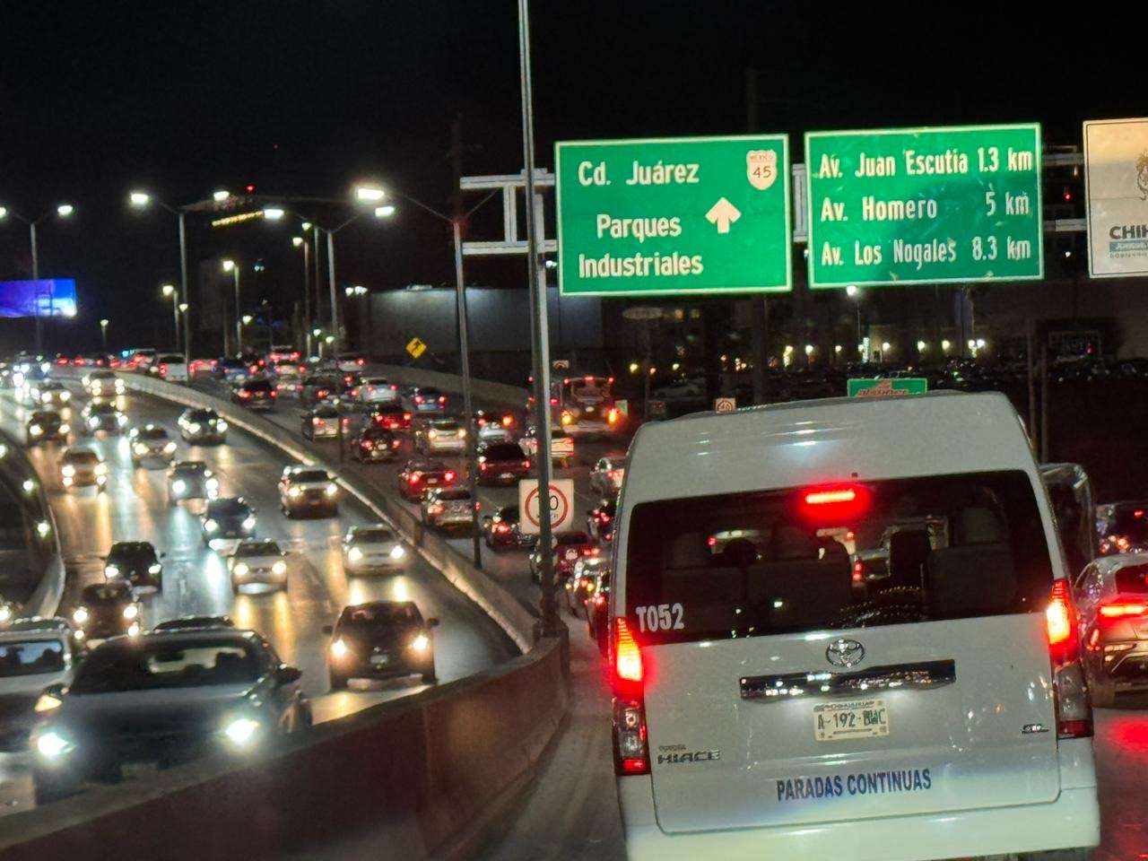 Este fenómeno se presentó durante la hora pico, cuando miles de chihuahuenses salen del trabajo y se dirigen hacia sus hogares. Lo que sorprendió a muchos fue cómo esta vía rápida, que suele ofrecer un tránsito fluido, se transformó en un atasco de tráfico, avanzando a paso de tortuga.