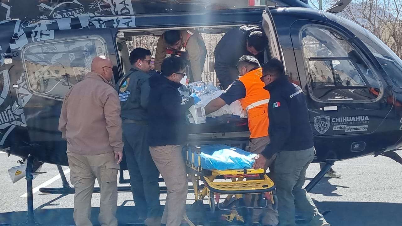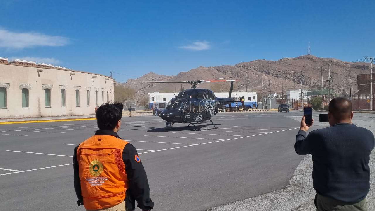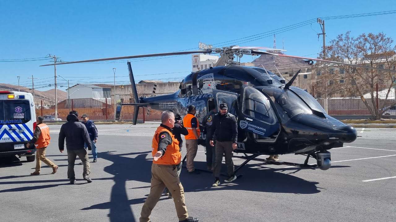 Chihuahua.- Un operativo fue realizado para asegurar el aterrizaje de un helicóptero de la Secretaría de Seguridad Pública estatal que trasladaba a un hombre de 60 años desde Ciudad Juárez a la ciudad capital, quien presentaba quemaduras de segundo y tercer grado en el 60% de su cuerpo.