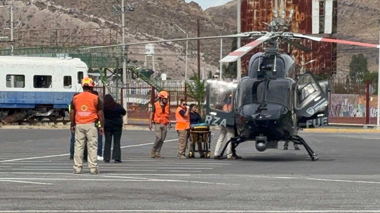 El helicóptero de la Secretaría de Seguridad Pública Estatal (SSPE) trasladó a la mujer y aterrizó en el estacionamiento de Expo Chihuahua, donde ya la esperaban una unidad de URGE y personal de Protección Civil del Estado para completar el operativo.