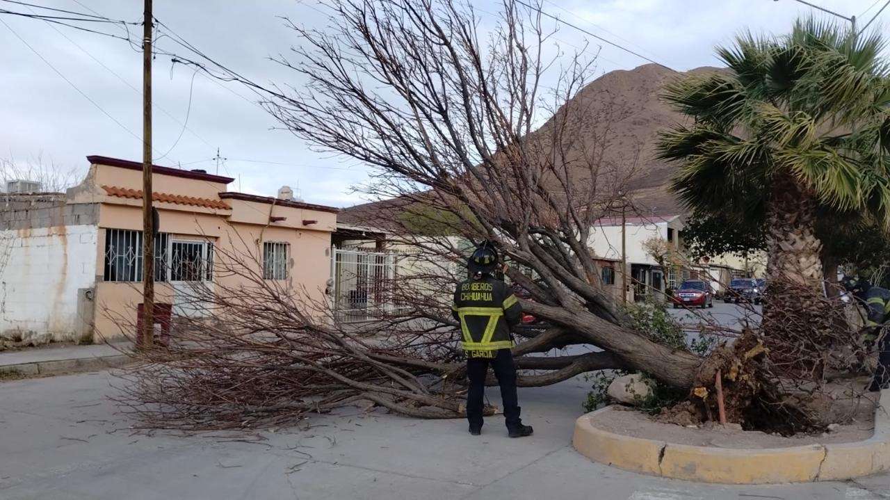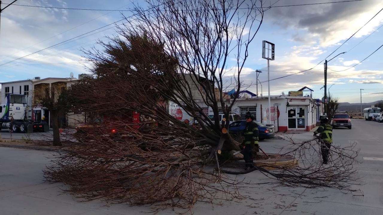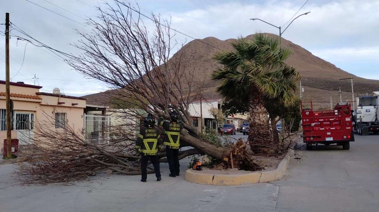 Chihuahua.- Luego de varios reportes en falso, elementos del Cuerpo de Bomberos atendieron el reporte de un árbol caído al sur de la ciudad.