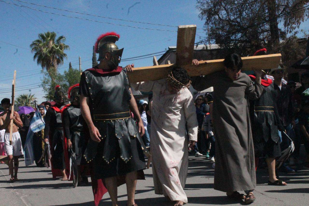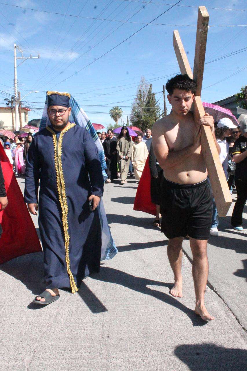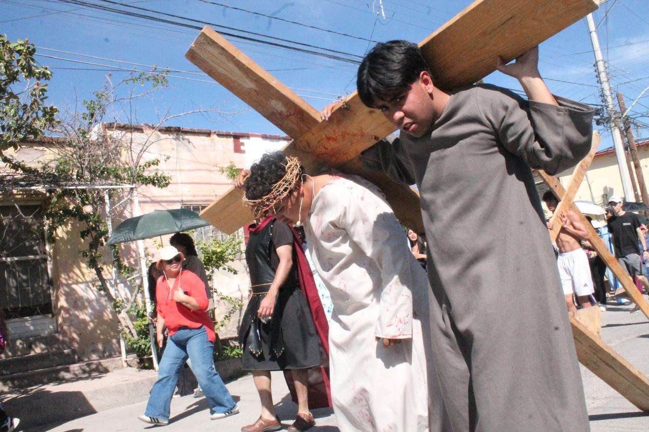 De manera simultánea, la devoción se extendió hasta la colonia Nombre de Dios. Allí, la comunidad de la parroquia de San Juan Bautista, junto a su párroco, participó activamente en su propia representación del camino al Calvario. Con una organización impecable y un espíritu de entrega, los feligreses recorrieron las estaciones dando muestra de una fe inquebrantable.