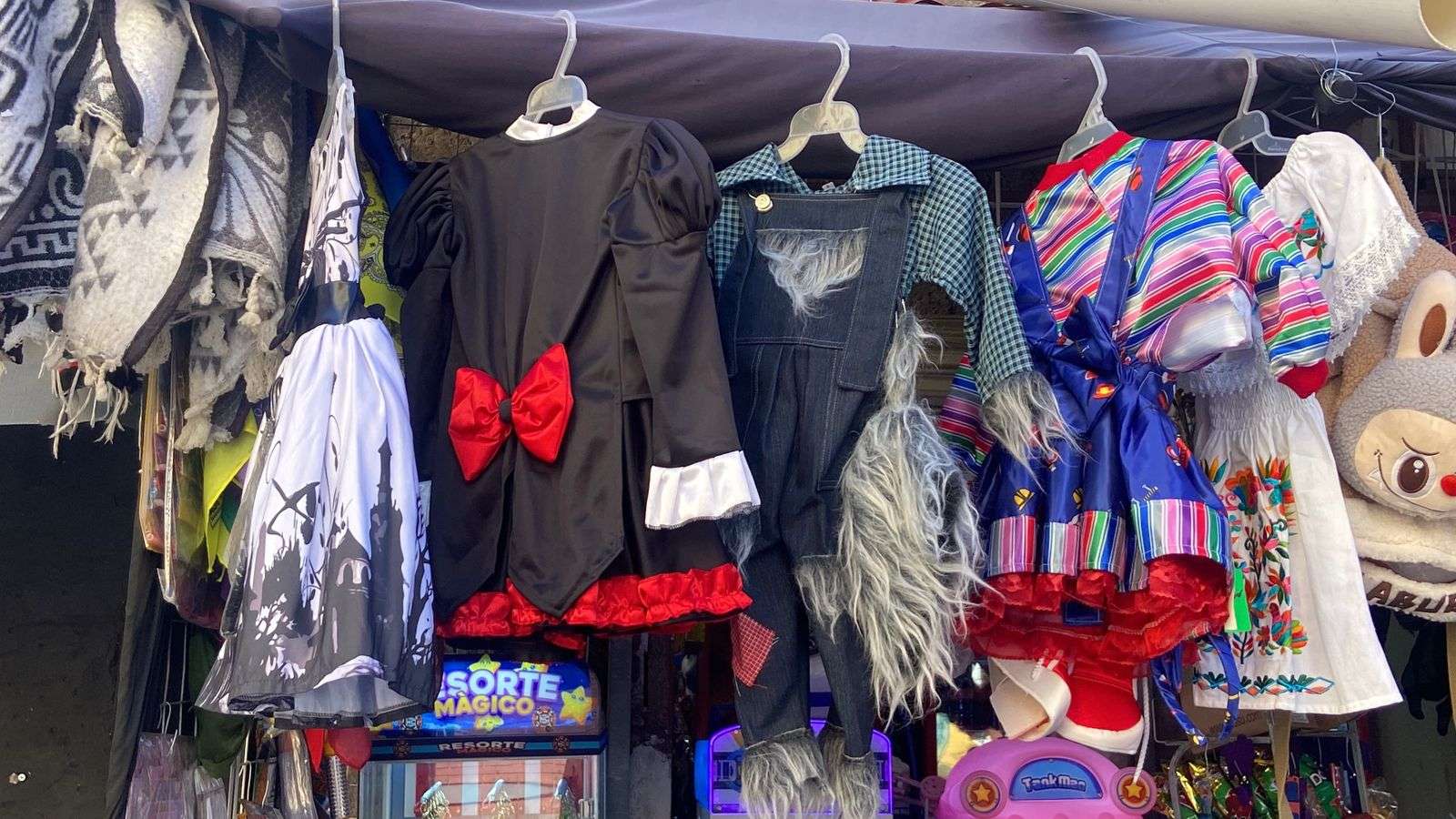 Los precios varían según el tipo de disfraz y la talla, y oscilan entre los 350 y los 700 pesos. Hay opciones para niños y adultos, con personajes como Chucky, hadas, La Llorona, espantapájaros, Drácula, Scream y muchos más.