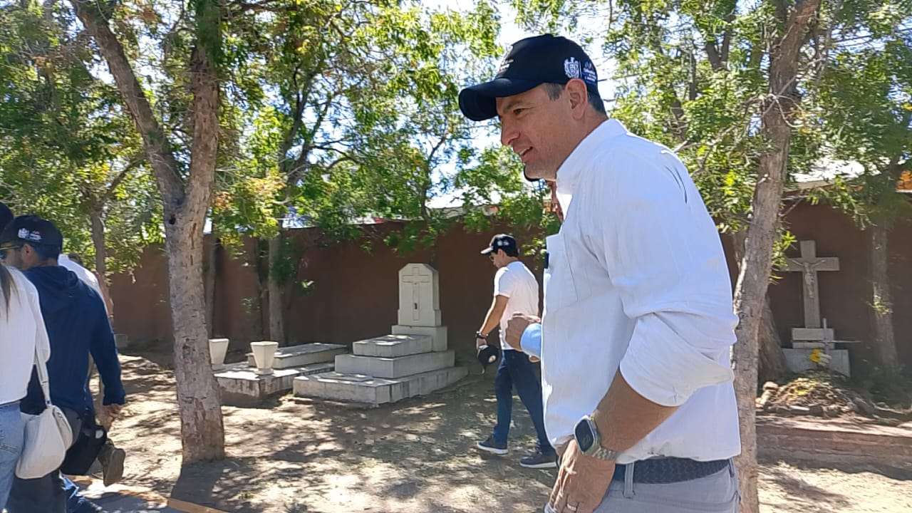 El edil caminó por los camposantos desde temprana hora, saludó a comerciantes y visitantes, y observó las labores de limpieza, seguridad y asistencia implementadas por el municipio para estas fechas. Al llegar al antiguo panteón de la ciudad, tomó unos minutos para visitar la cripta donde se encuentran miembros de su familia.