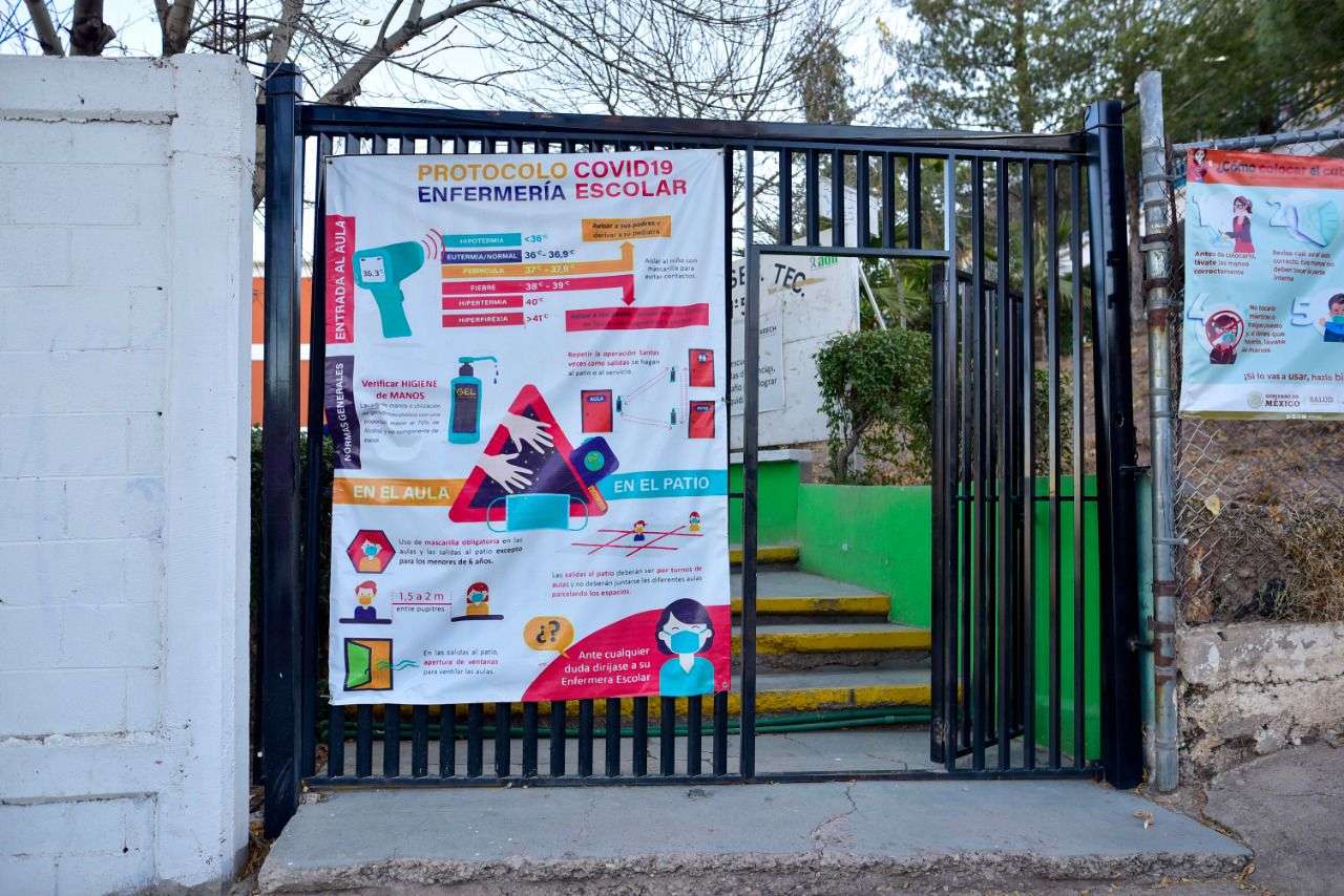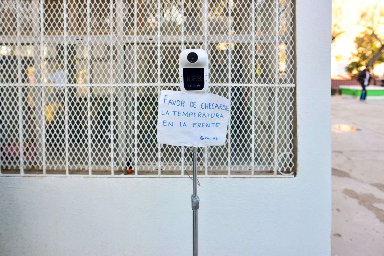 Como parte de las medidas sanitarias para un regreso seguro a clases, a la entrada del plantel se colocaron termómetros, lavamanos, así como carteles con información alusiva a las medidas de prevención, higiene y uso correcto del cubrebocas.