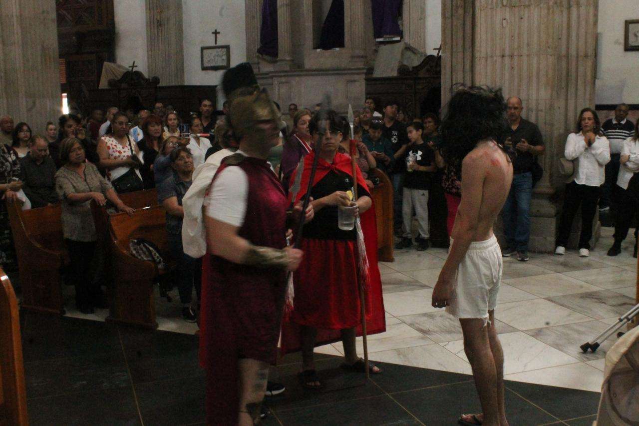 La jornada espiritual dio inicio en las inmediaciones de la Plaza del Ángel, punto de reunión donde cientos de feligreses se congregaron desde temprana hora para acompañar las estaciones que rememoran la pasión de Jesucristo.