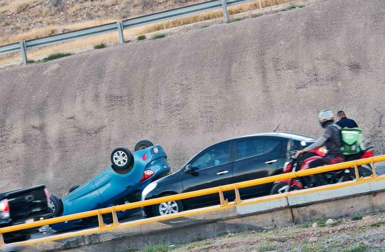 Chihuahua, Chih.- Una volcadura se registró sobre el Periférico de la Juventud, casi en el cruce con la avenida Politécnico Nacional, frente al Instituto José David, en sentido de norte a sur.