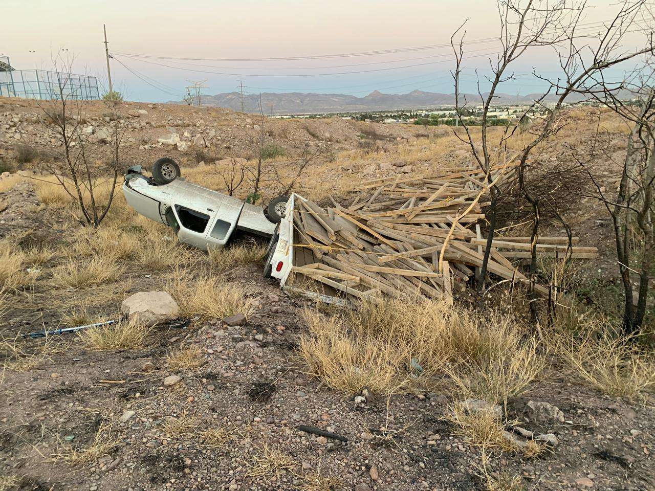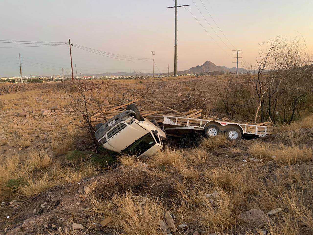 Chihuahua.- El conductor de una pick up con remolque cargado de madera, volcó en la carretera Aldama a Chihuahua.