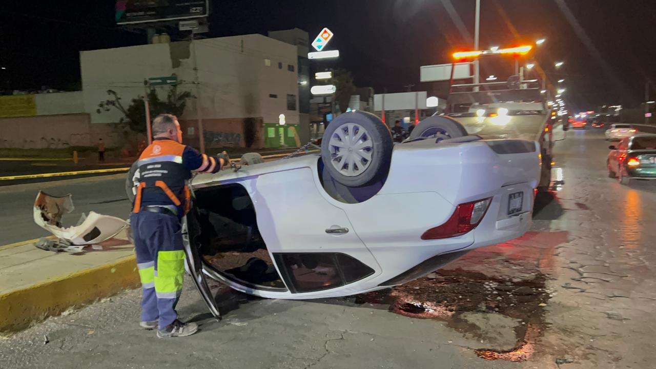 Inicialmente el joven conductor chocó contra el camellón central, lo cual produjo la volcadura hasta terminar la unidad con las llantas hacia arriba.