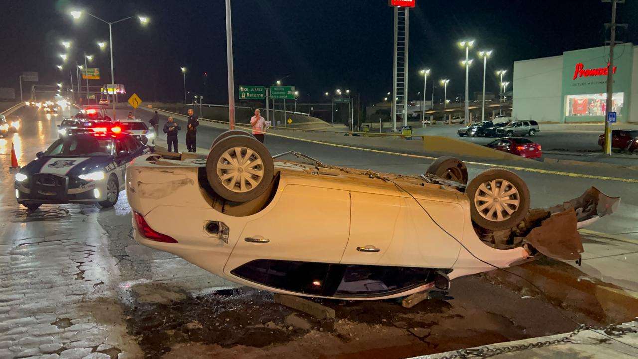 Chihuahua.- Un empleado de Gobierno del Estado sufrió un aparatosa volcadura al bajar del puente de la avenida Tecnológico y Homero.