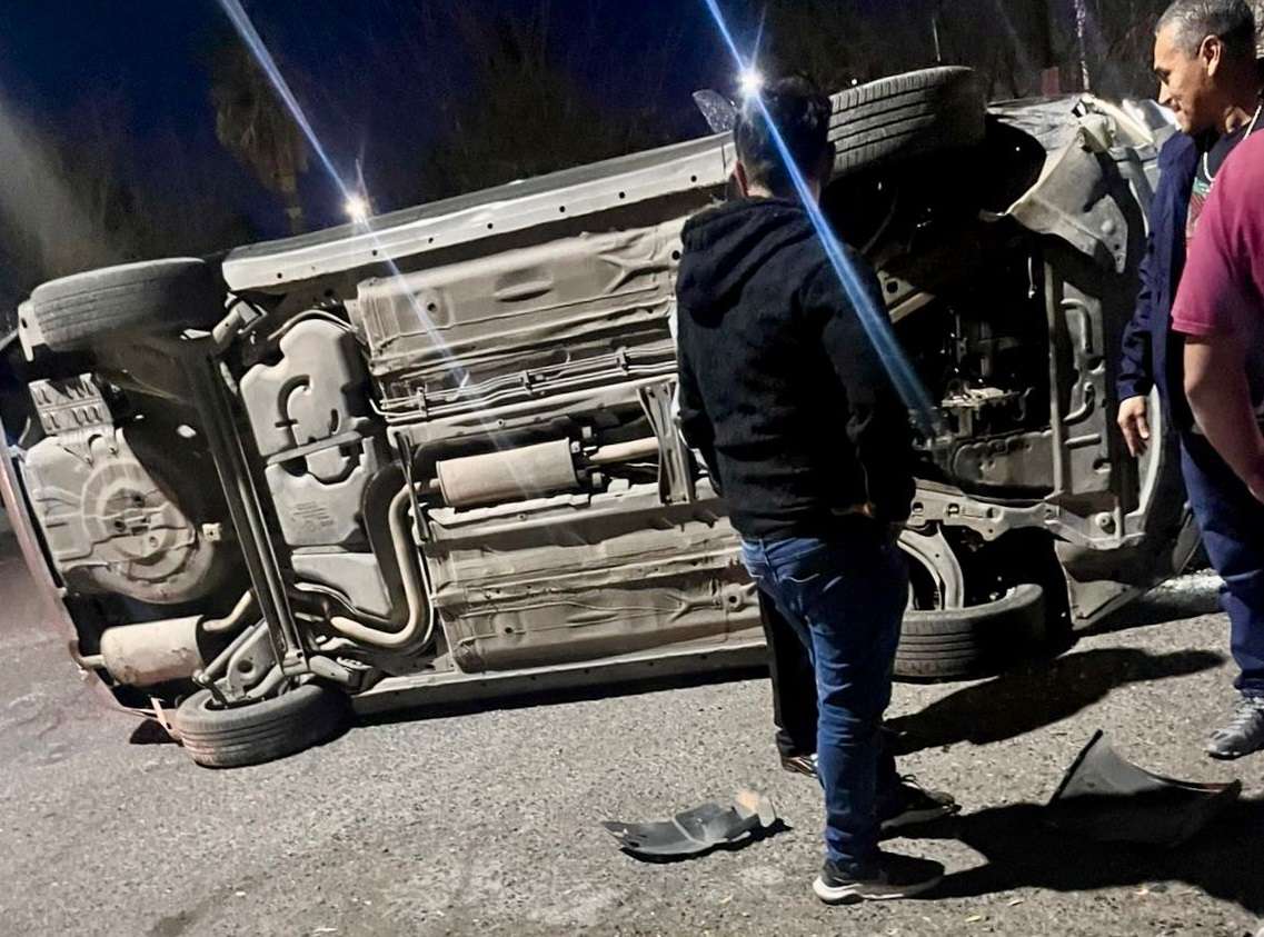 Chihuahua, Chih.- Un vehículo Nissan Sentra de modelo atrasado volcó luego de impactar contra otro automóvil de la misma línea, pero de modelo reciente, en calles del fraccionamiento Cafetales, al norte de la ciudad.