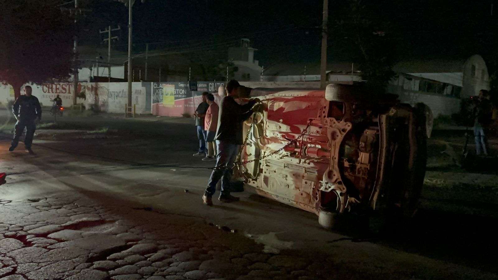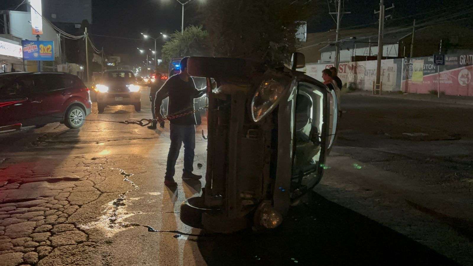 Chihuahua.- Se registró un fuerte choque entre dos vehículos, lo que terminó con una volcadura en el cruce de la calle Heroico Colegio Militar y Rosalío Hernandez, en la colonia Nombre de Dios.