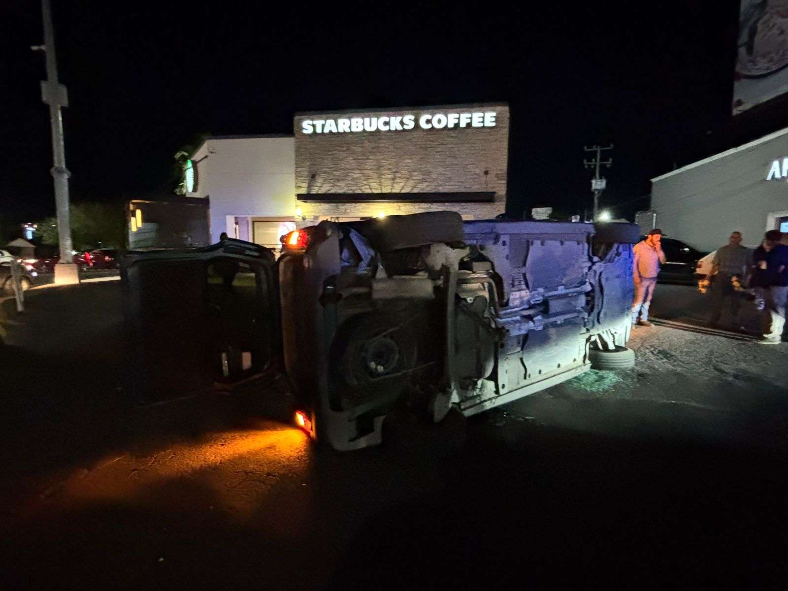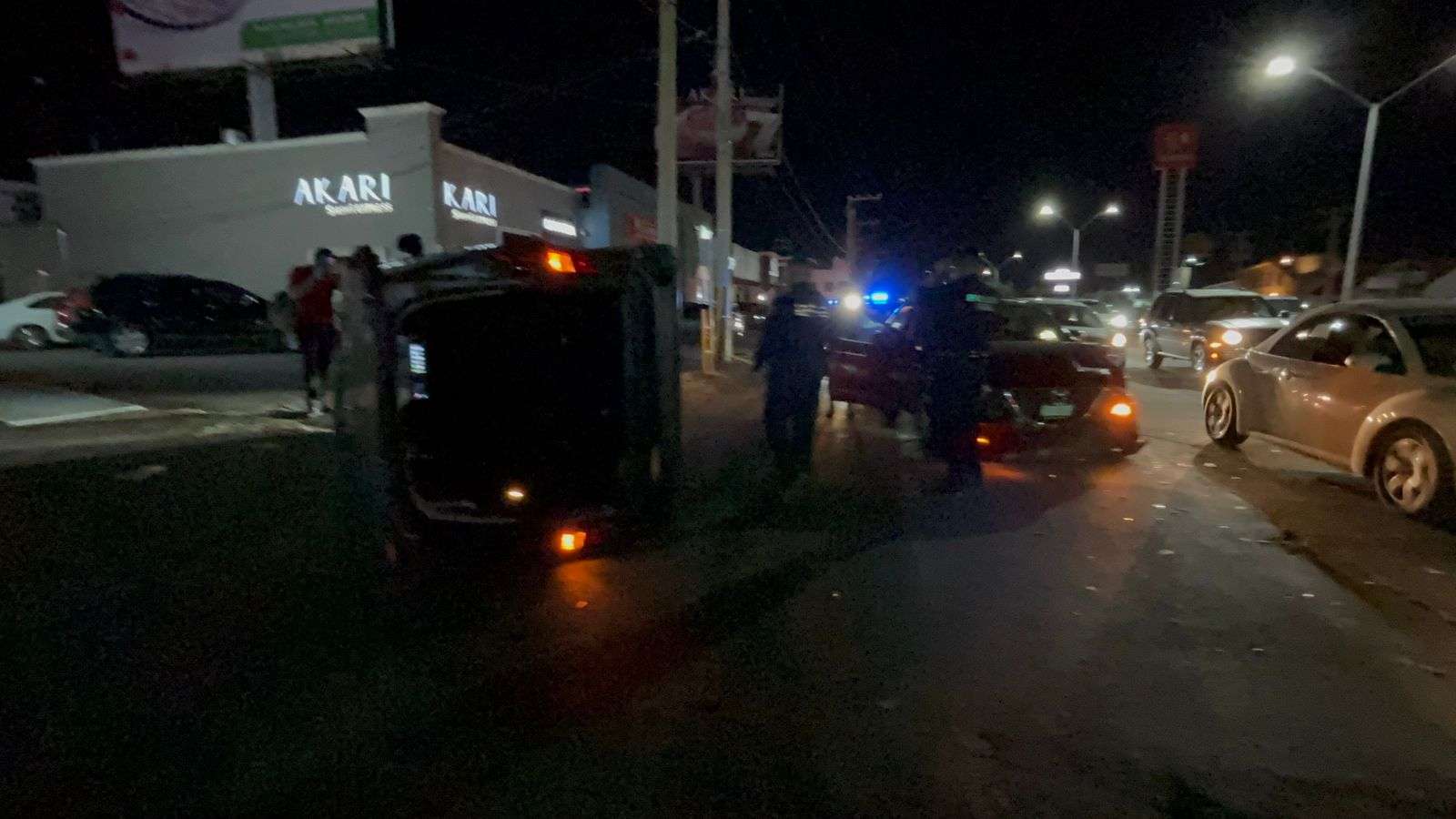 Chihuahua.- Un choque con volcadura se registró en la avenida Mirador, entre una camioneta Peugeot y un auto Mazda, ambos de reciente modelo.
