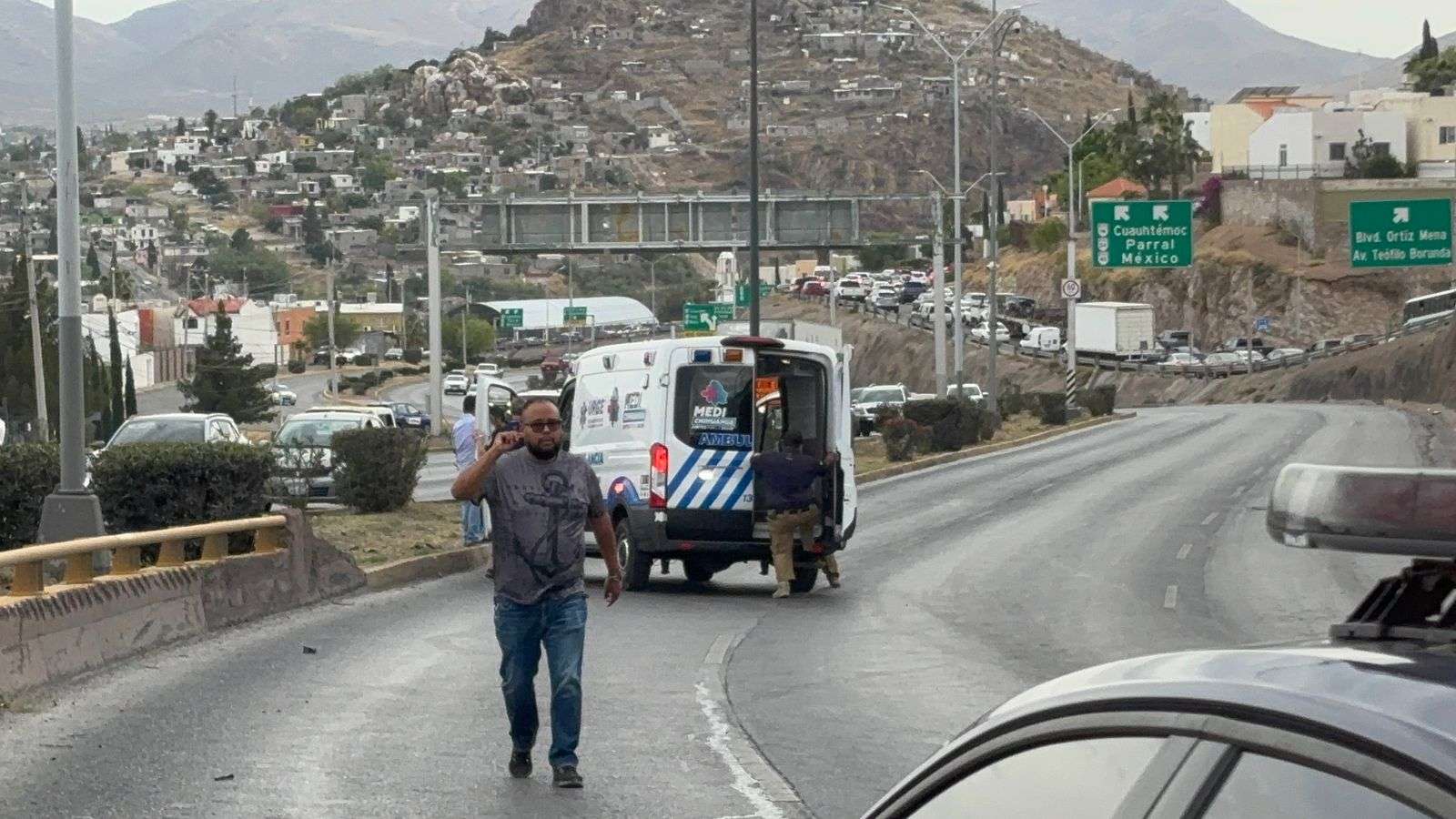 Chihuahua, Chih. — Un aparatoso accidente vial que involucró a cinco vehículos, de los cuales dos terminaron volcados, se registró la tarde de este miércoles sobre el Periférico de la Juventud, a la altura del Instituto José David.