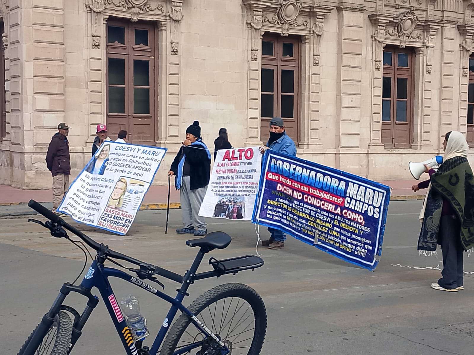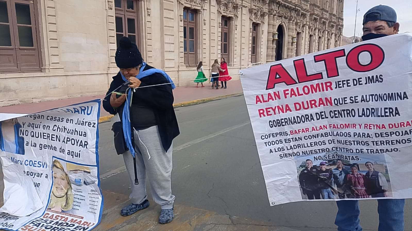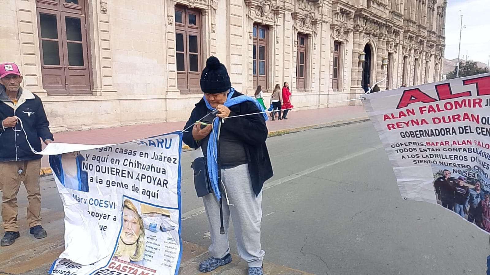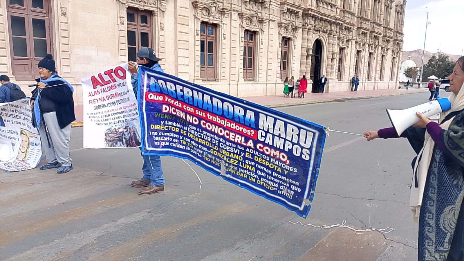 Chihuahua.- Por tercer día consecutivo, el grupo encabezado por Vicky Márquez y Dionisia Chaparro volvió a manifestarse frente a Palacio de Gobierno y, por segundo día, cerró la calle Aldama, provocando caos vial, molestia entre automovilistas y afectaciones directas a transeúntes en pleno corazón de la ciudad.