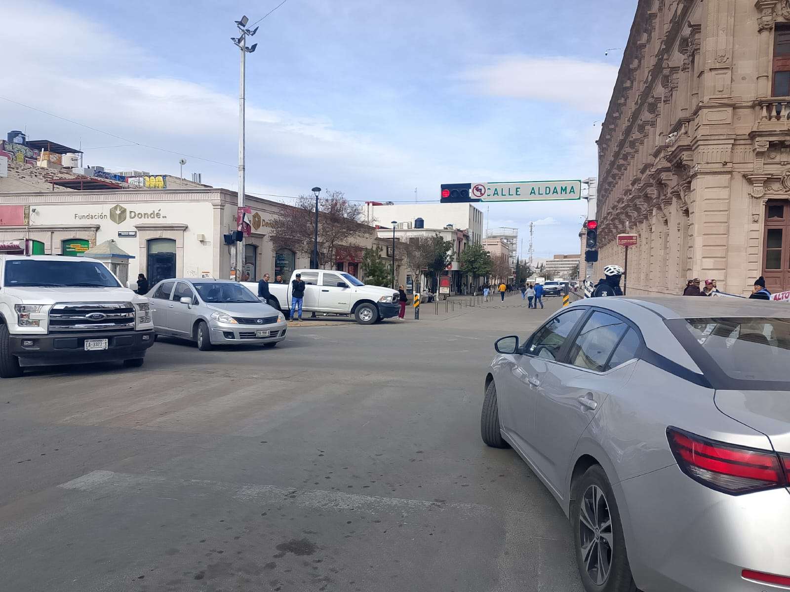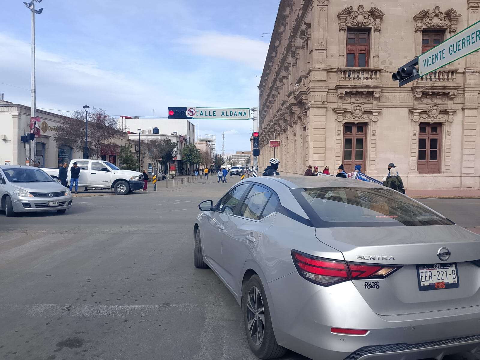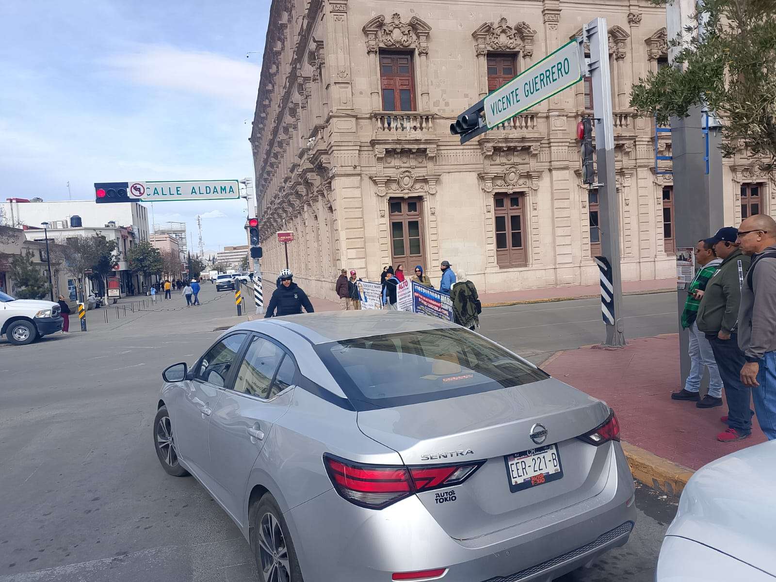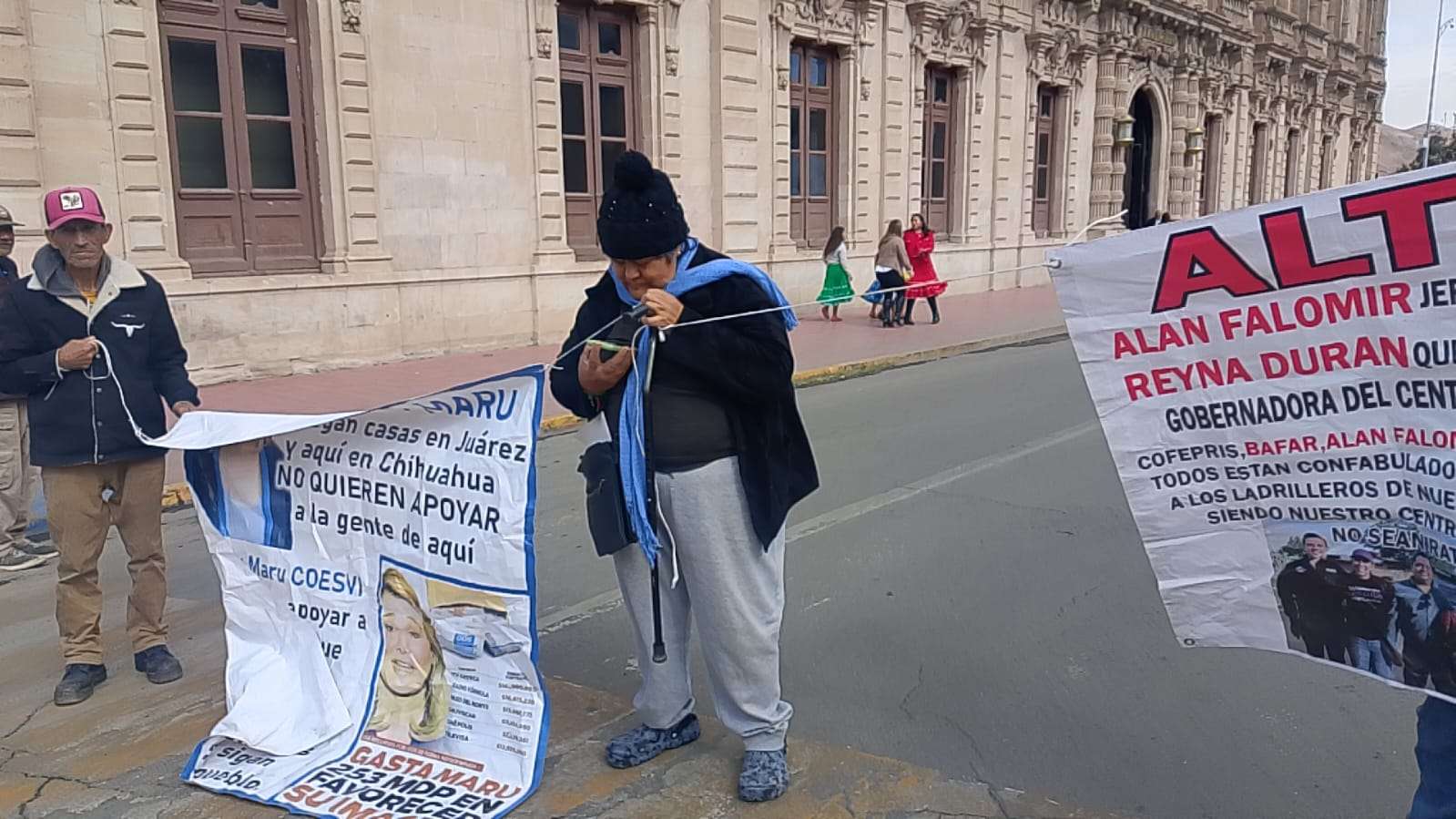 Chihuahua.- Por tercer día consecutivo, el grupo encabezado por Vicky Márquez y Dionisia Chaparro volvió a manifestarse frente a Palacio de Gobierno y, por segundo día, cerró la calle Aldama, provocando caos vial, molestia entre automovilistas y afectaciones directas a transeúntes en pleno corazón de la ciudad.