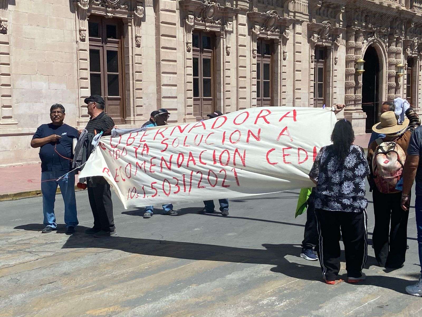 Para bloquear el paso, colocaron una lona con el mensaje: “Gobernadora, pido ya solución a recomendación de la CEDH”, lo que obligó a los automovilistas a circular de uno en uno.