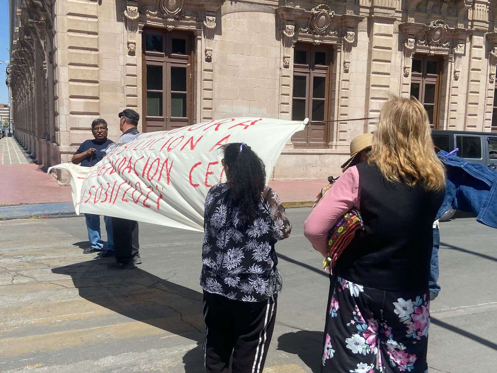 La señora Chaparro exige ser atendida por el Subsecretario General de Gobierno, Óscar González Luna, o por alguna autoridad del Gobierno del Estado.