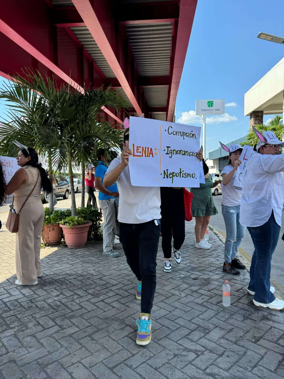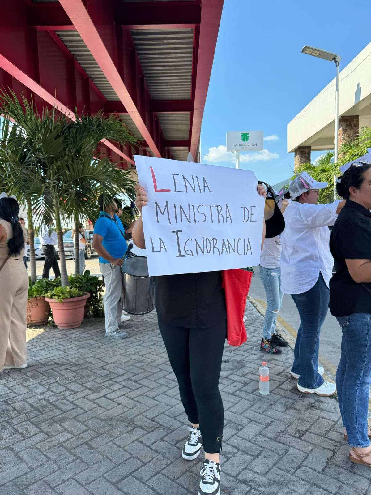 Otros cuantos llevaban carteles en los que expresaban su rechazo hacia la ministra con frases como "Lenia la ministra de la ignorancia" o "La familia Batres es sinónimo de nepotismo".