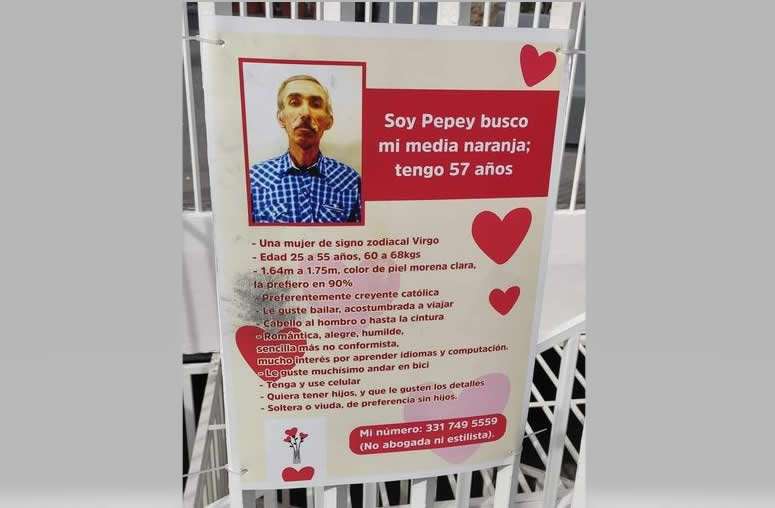 En redes sociales circuló el anuncio de Pepe, el cual fue decorado con corazones rojos, incluye su foto, datos y requisitos específicos para encontrar a una mujer con quien salir.