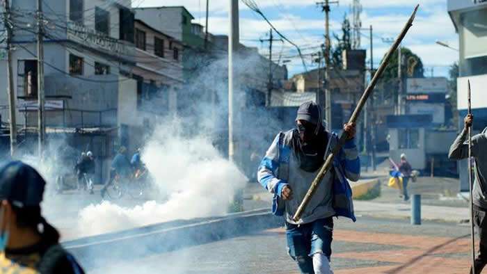 Tras nueve días de protestas en varios puntos del país que cortaron vías con neumáticos envueltos en llamas y afectaron la producción petrolera, el ministro de Defensa, Luis Lara, expresó que "la democracia del Ecuador está en serio riesgo".