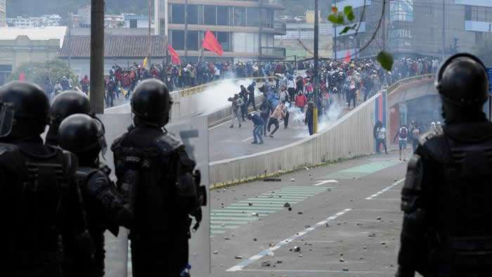 En tanto, muy cerca de la Universidad Salesiana que aloja a los manifestantes, se concentraron temprano los mayores choques con la policía antimotines en el noveno día de protestas indígenas para exigir la reducción de los precios del combustible.