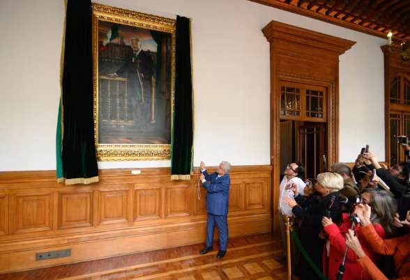 A esto se suma que retrató al presidente con una expresión “amable, pero firme”, parado en el balcón presidencial, con la ventana abierta y con una mano recargada en el barandal, para representar la misma idea de su apertura con la ciudadanía.