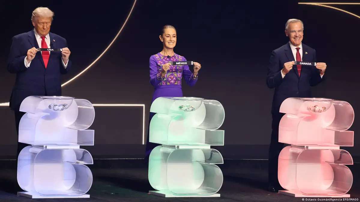 Los presidentes de Estados Unidos, Donald Trump, y de México, Claudia Sheinbaum, junto al primer ministro de Canadá, Mark Carney, coincidieron este viernes (05.12.2025) en la ceremonia del sorteo del Mundial de Fútbol 2026, en Washington. En la ocasión, los tres líderes de los países anfitriones del campeonato subieron al escenario y se situaron en diferentes podios para sacar las primeras bolas del sorteo.