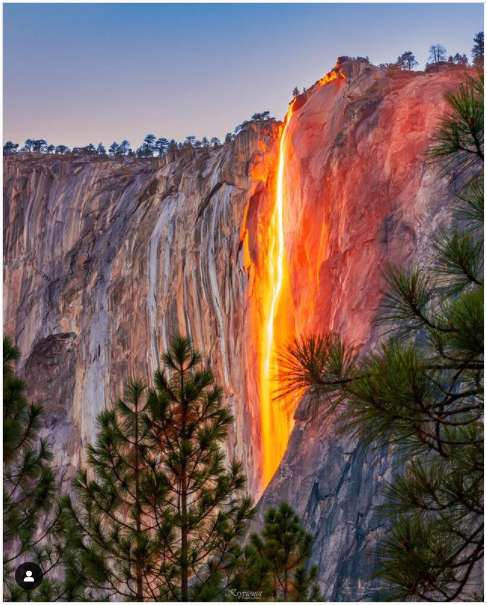 Eu.- Cada año el Parque Nacional de Yosemite, en California, alberga un espectáculo natural único para el deleite de sus visitantes. Se trata de la inusual Cascada de Fuego que aparece desde mediados hasta finales de febrero, durante cada puesta del Sol.